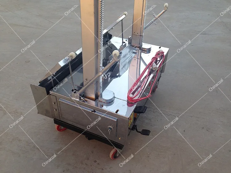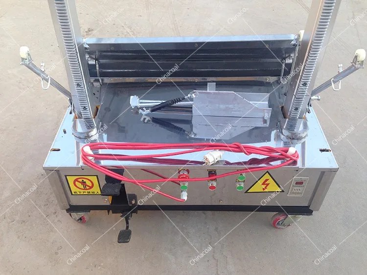 Wall Plastering Machine is also known as: Wall finishing machine. It is a machine specially designed for wall plastering. A hoist with a vertical gantry and a counter scraper frame is mounted on the upper surface of the chassis, and a hopper above the chassis and connected to the chassis is installed inside the two columns of the scraper frame. The hopper can be slidably attached to the two columns by the hoisting machine. One side of the gantry is provided with a discharge opening on the upper façade of the hopper, and a squeegee is mounted on the lower part of the discharge opening; in the hopper, along the width direction thereof Supported by a dial roller, the motor is connected to the dial by a speed reducer, and the other end of the hopper is provided with a feed port.