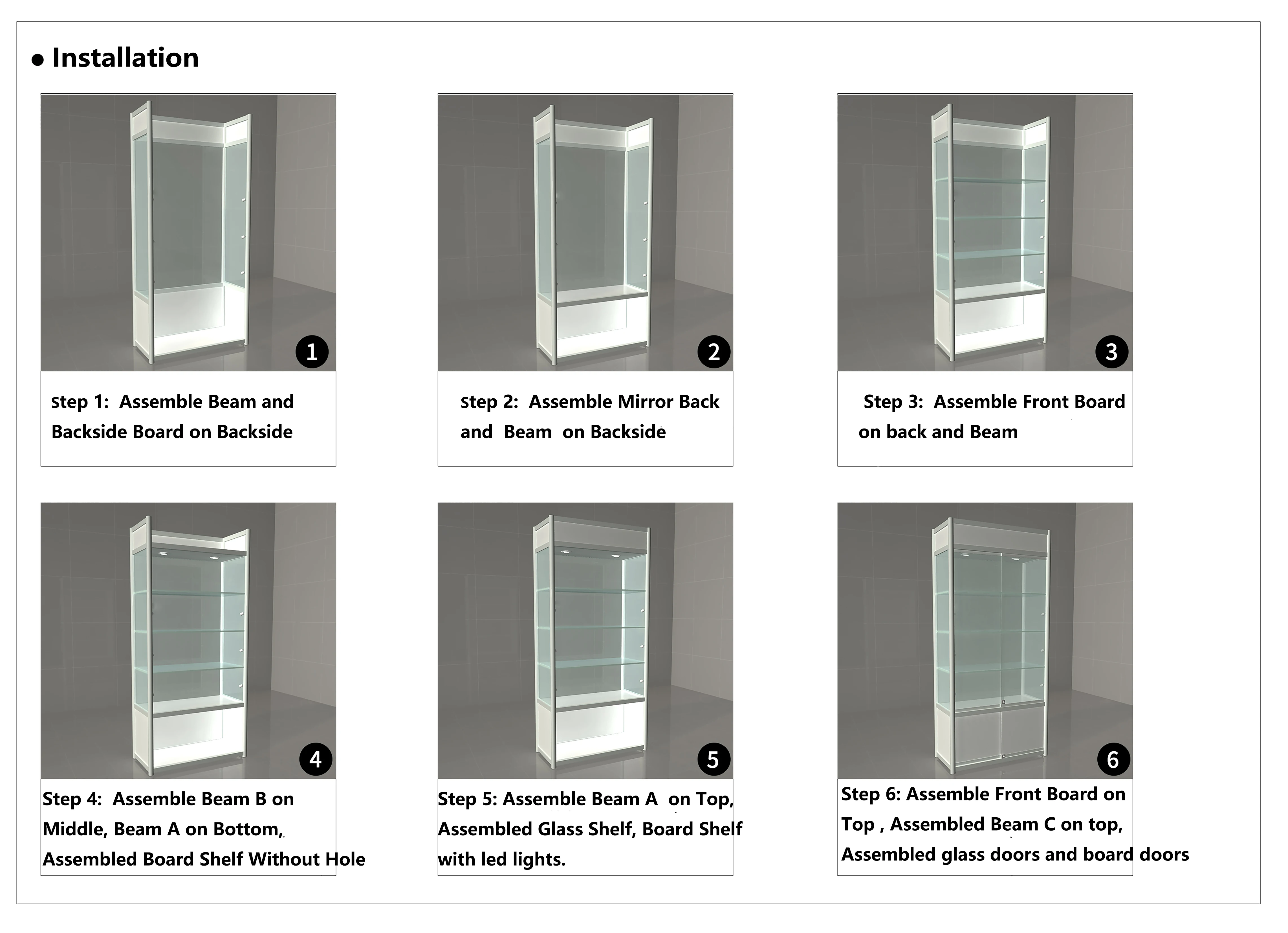 Taking "to provide a from head-to-toe proposal of your shop" as our target, we always focus on providing our customers with the overall solution. We aim at customer experience, from the layout design, to production and processing, to after-sale installation, knowing our customer needs, understanding our customers’ thoughts. To ensure our service, we have experienced technicians who have been working for 20 years, professional designers who can draw 3D design, Cad floor plan, and highly qualified production manager.