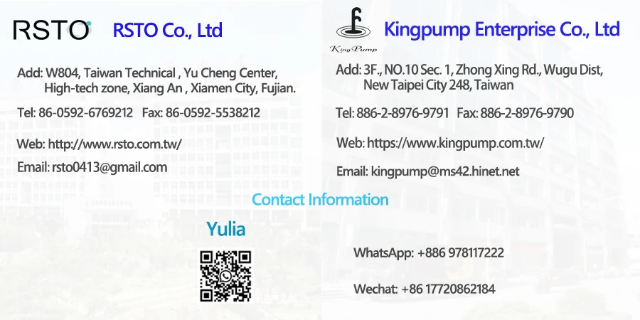 Kingpump Enterprise Co., Ltd in Taiwan and RSTO Co., Ltd in China.