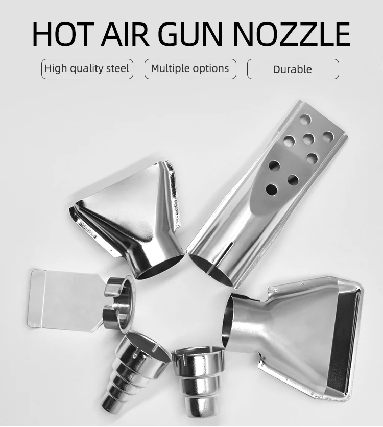 The heat gun nozzle kit is made of stainless steel material, which provides durability and offers good corrosion resistance; Heat gun Nozzles has a ergonomic design handle