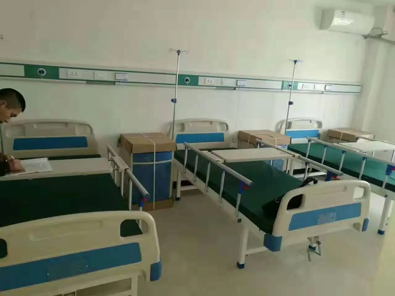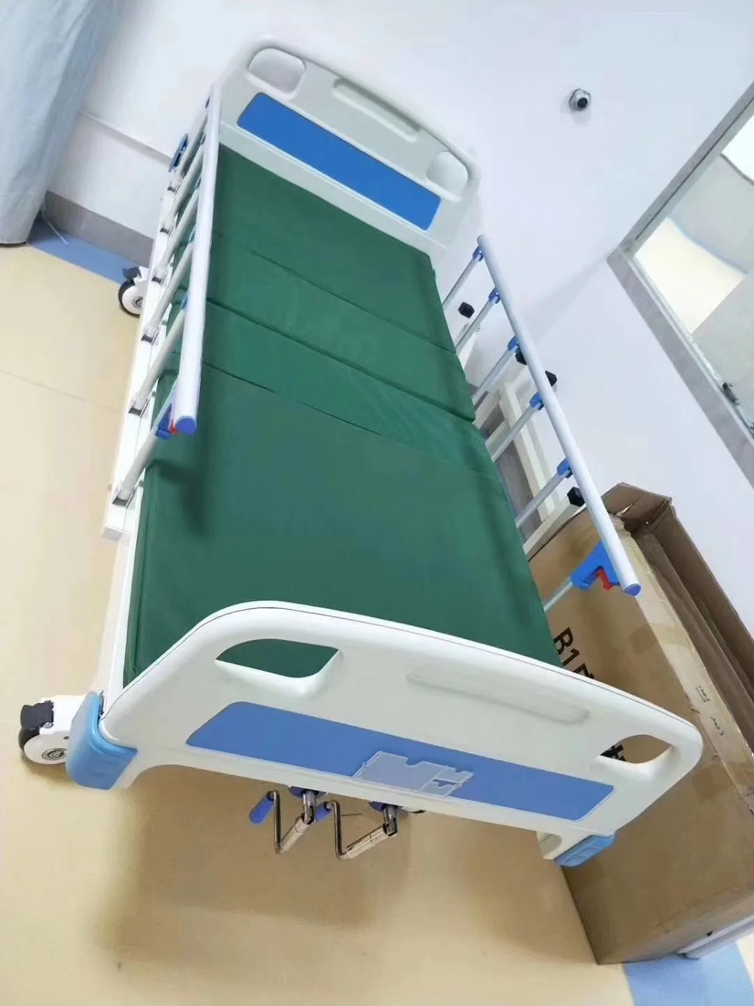 (2)Two guardrails on one side of the bed, complete with an embedded pot-touch keyboard, which allows the patient to adjust the posture of the bed body. There is a touch keyboard on the outside of the bed that can be used by paramedics for the posture of the bed body, and it can be added to the system to ensure safety