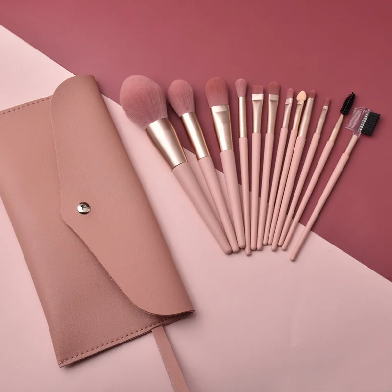 Description:Cheap 12pcs lotus root pink brush loose powder blush eye shadow brush bag beauty tools soft hair set brush