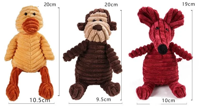 Material: corduroyDesign: Crocodile, rabbit, mouse, monkey, pink pig, sheep, yellow duck, fox, elephant, rhino, dog, lion, blue bear