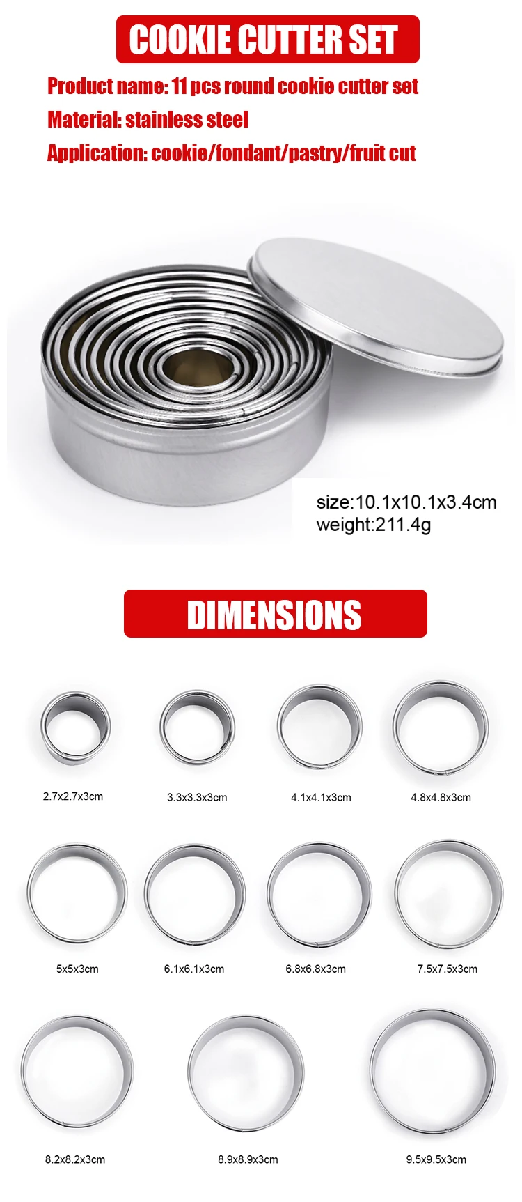 Product Name: | 11 pcs stainless steel metal 3d custom cookie cutter |