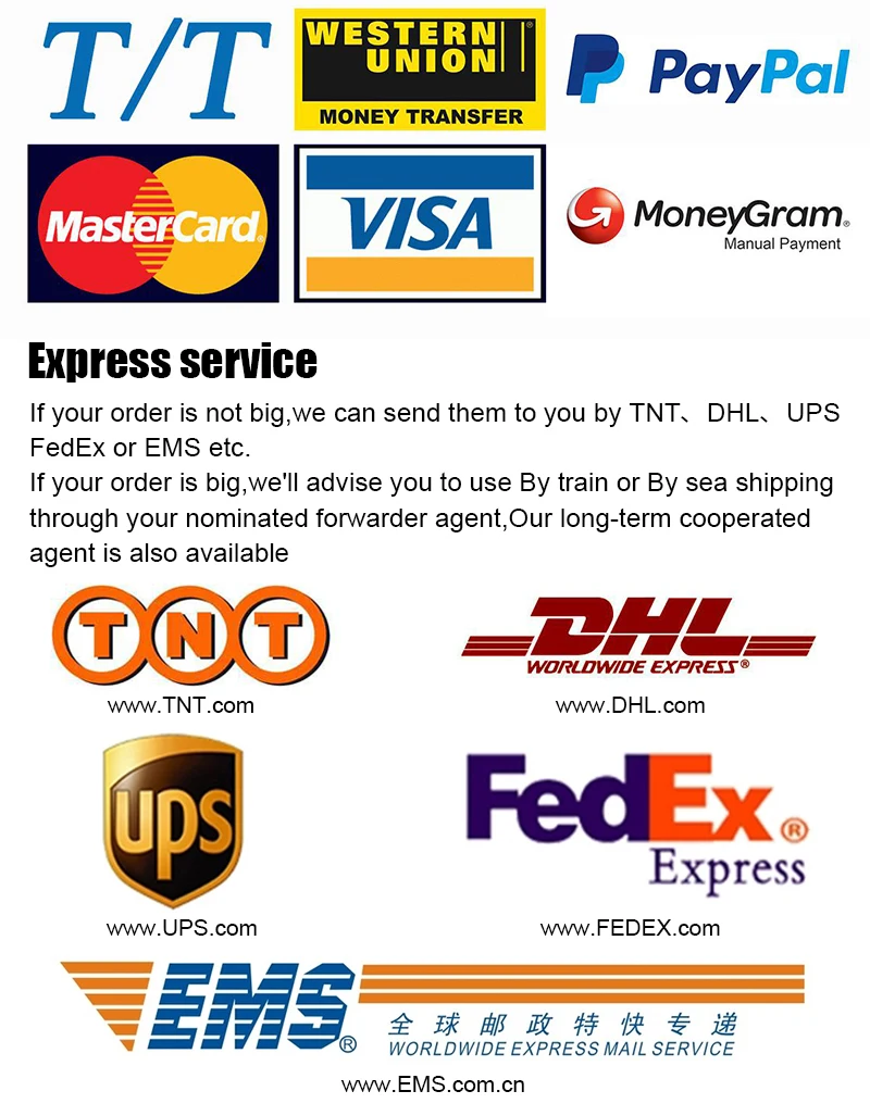 You can place an order online or contact us as needed, and then we will send a proforma invoice to confirm the order; you may pay for the order via Paypal, Western Union, VISA, Mastercard, T/T, or online transfer. After payment, we will send the goods within 2-5 working days.