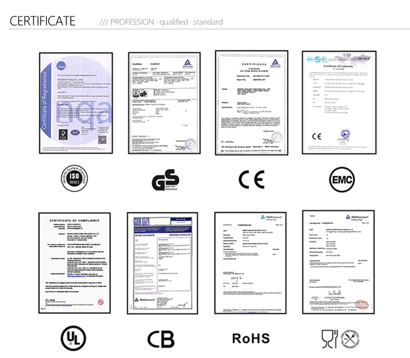 A: Quality is the most important for us,we has been accreditated by several certification aughorities domestically and internationally, including China Compulsory Certification (CCC),European Union quality approval (CE/GS/RoHS/PAH etc.) and USA quality approval (ETL/UL).