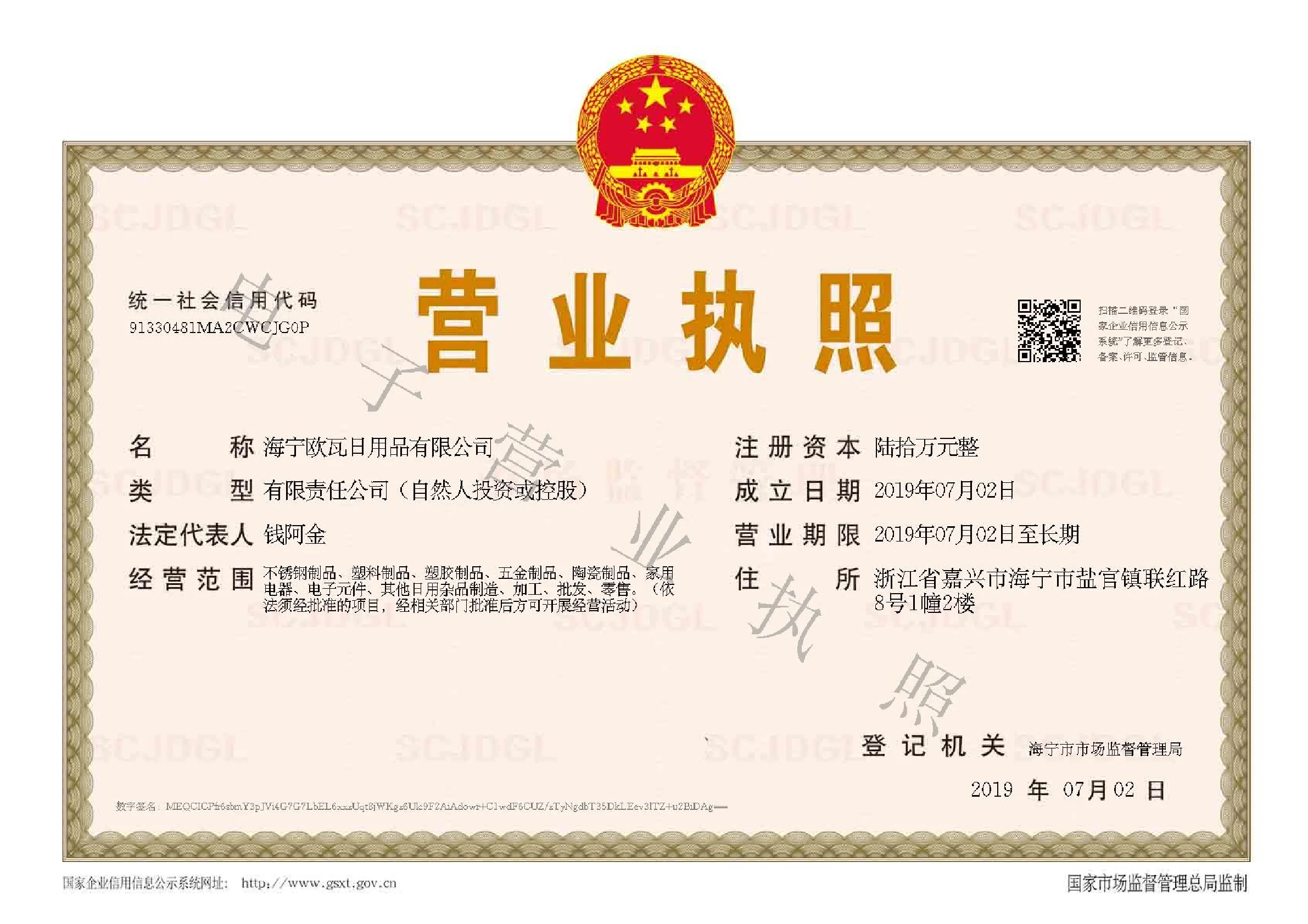 A: Haining Ouwa Daily Necessities Co.,ltd is a manufacturer located in Jiaxing.
