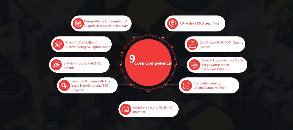 We has 11 patents related to manufacturing technology and more than 300 successful development cases. Our "Nine Core Competencies" will provide you with professional and effective customized solutions and quality products. Welcome to negotiate.