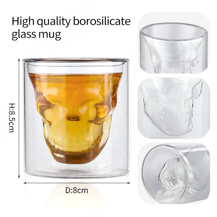 * Clear Transparent shot glass makes a 3D form in the shape of a detailed skull.