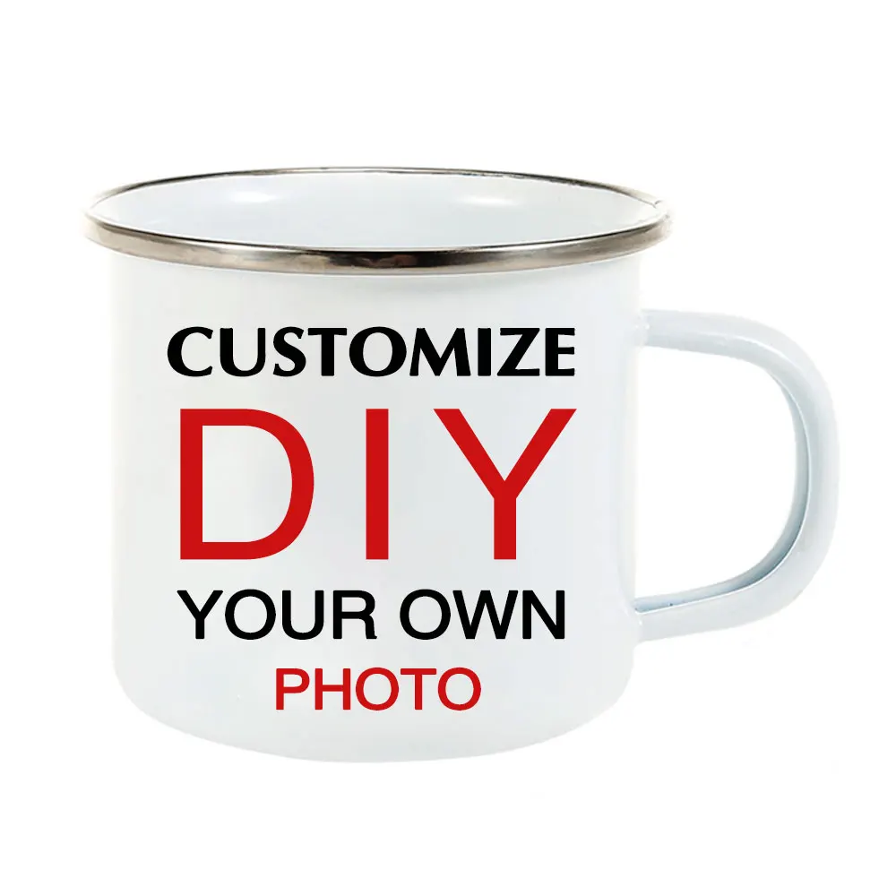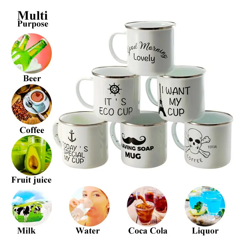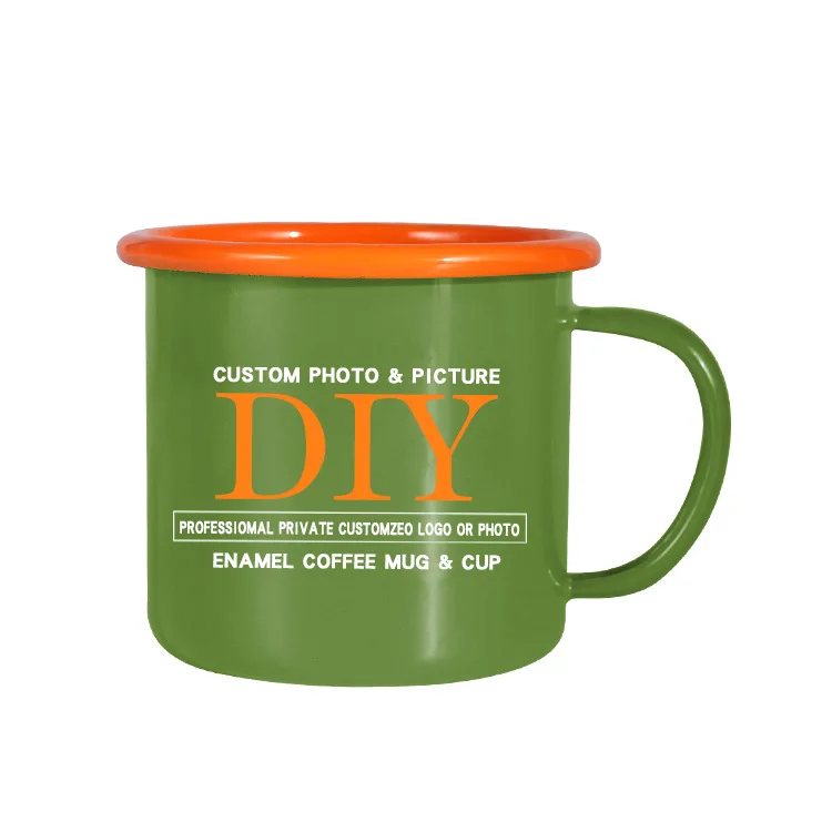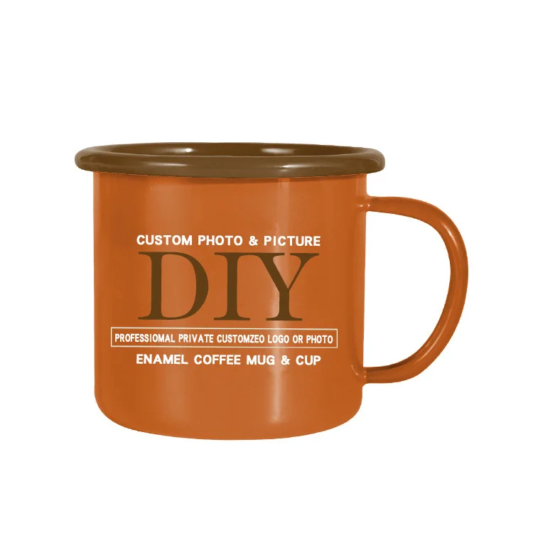 Custom Artwork Logo Printed 8oz 9oz 12oz Sublimation Metal Enamel Mug Coffee Camping Cup Enamel Tea Cup With Handle