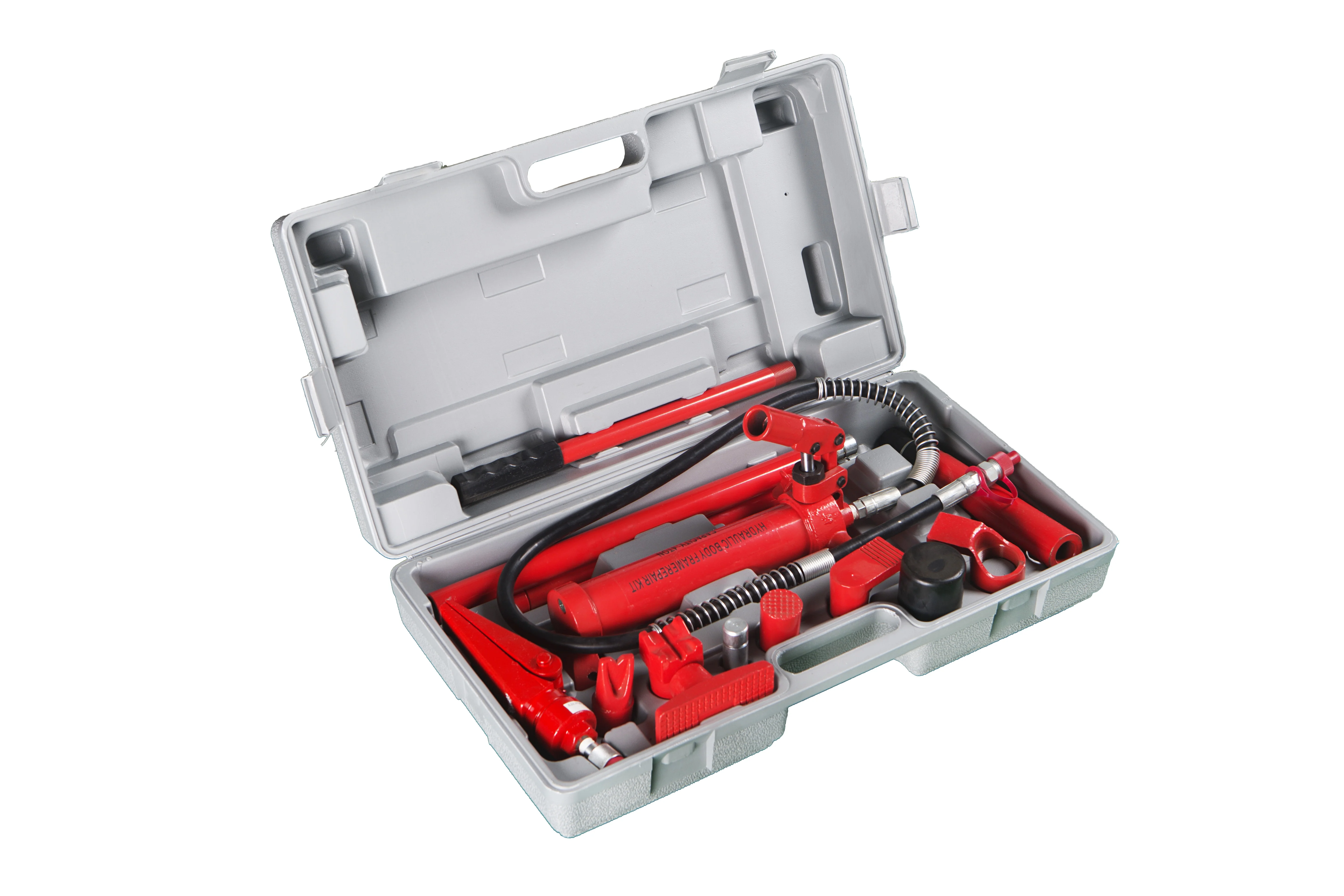 *lnclude: hand pump with hose, cylinder ram, spreader ram, rubber head, flat base, v-base, serrated saddle, male thread adapter,assorted extension tubes.
