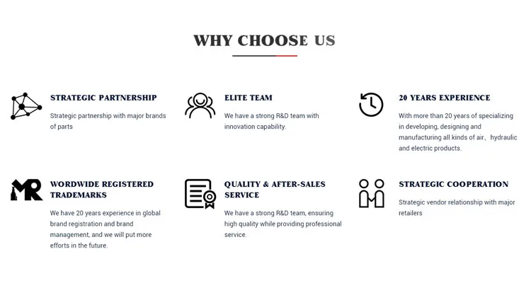 We produce air、hydraulic and electric products.