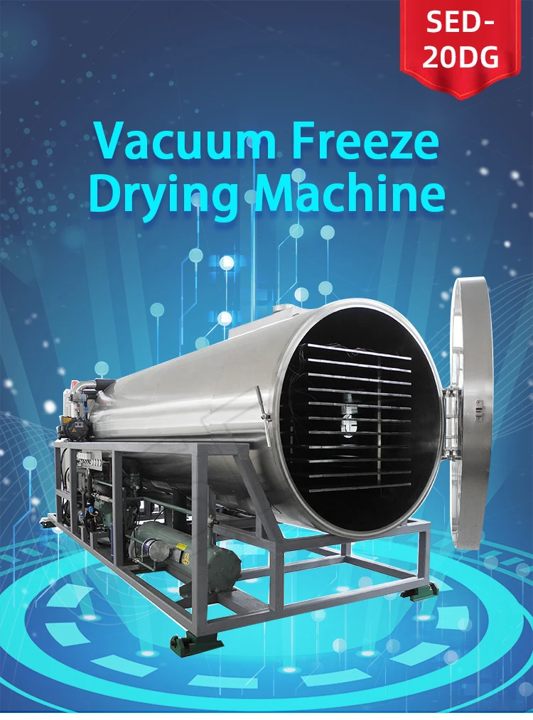 1、Product introductionThe SED-20DG vacuum freeze dryer changes the tedious operation of the past drying process, prevents material contamination, and realizes the automation of drying and sublimation, and is suitable for pilot or small batch production. This model has partition heating and programmable functions, and can memorize the freeze-drying curve, which is convenient for users to observe the freeze-drying process of materials.
