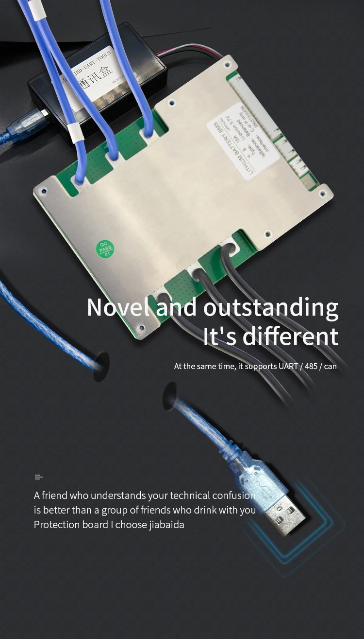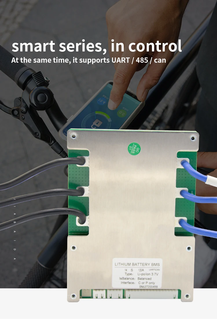 JBD-SP15S008C is designed by Dongguan jiabaida Electronic Technology Co., Ltd. It is an intelligent protection board scheme specially designed for 15 series battery packs of power battery, electric bicycle, electric motorcycle, etc. It is suitable for lithium batteries with different chemical properties, such as lithium ion, lithium polymer, lithium iron phosphate, etc.The protection board has strong load carrying capacity and the maximum continuous discharge current can reach 120A.