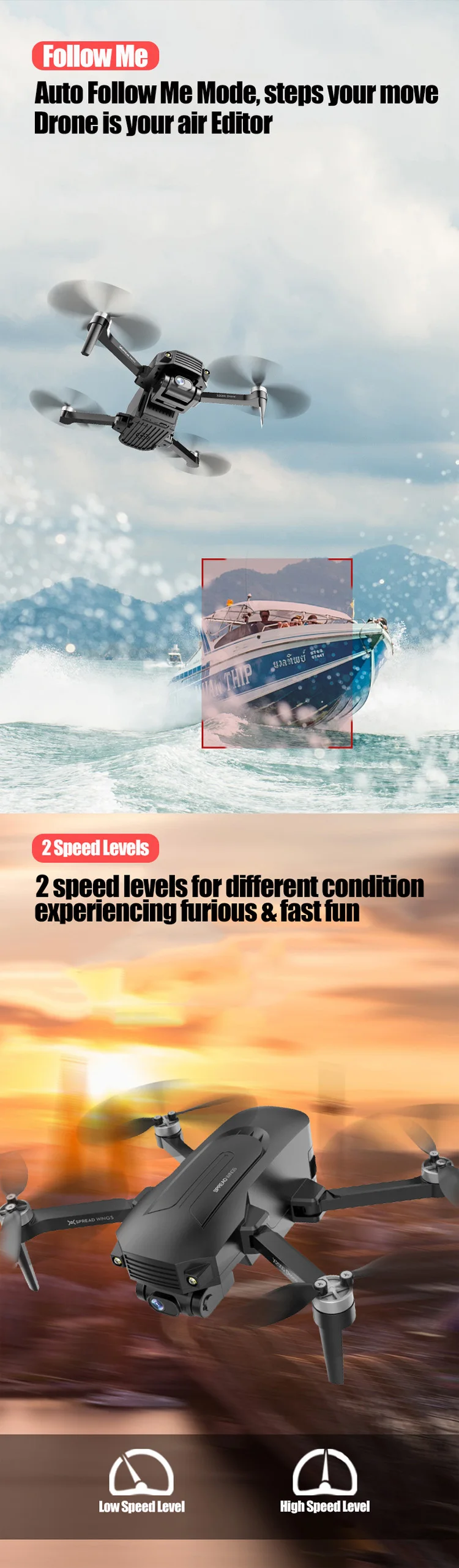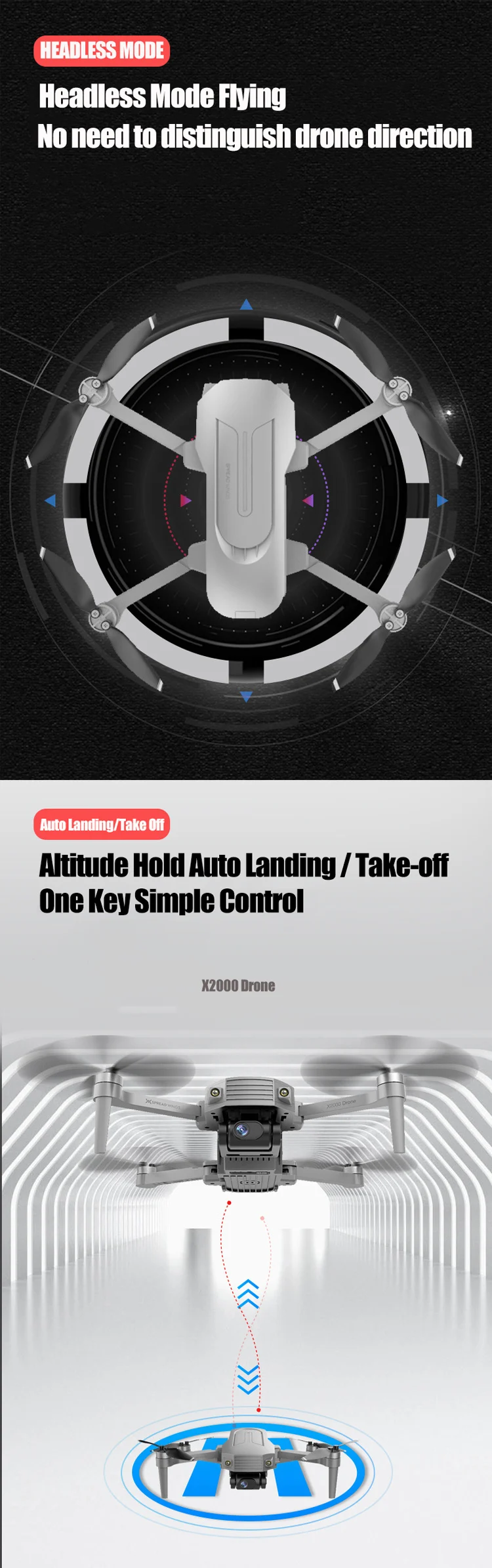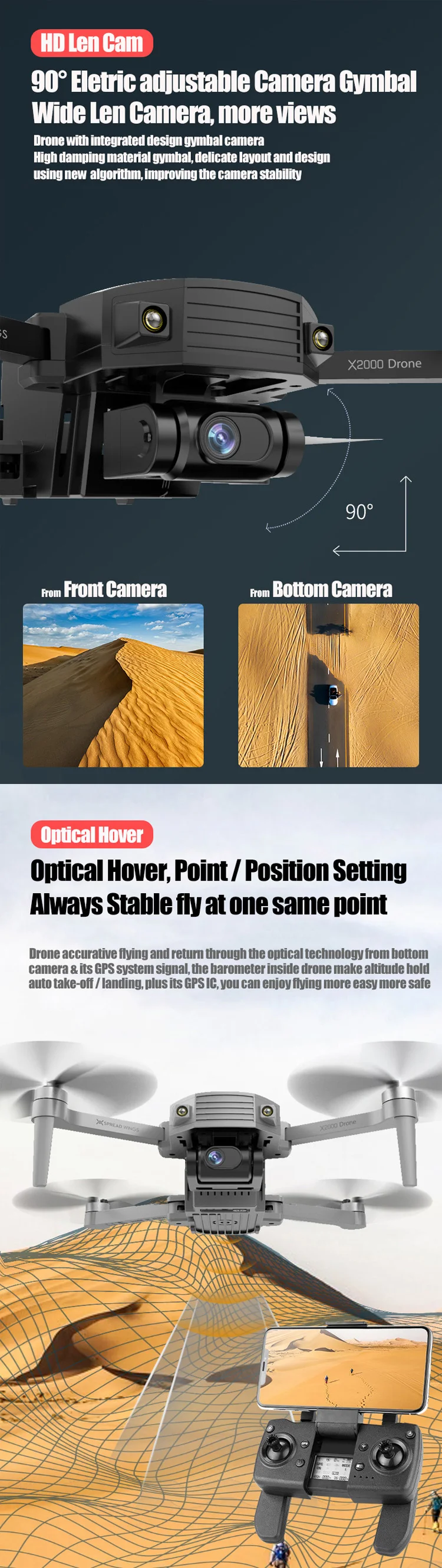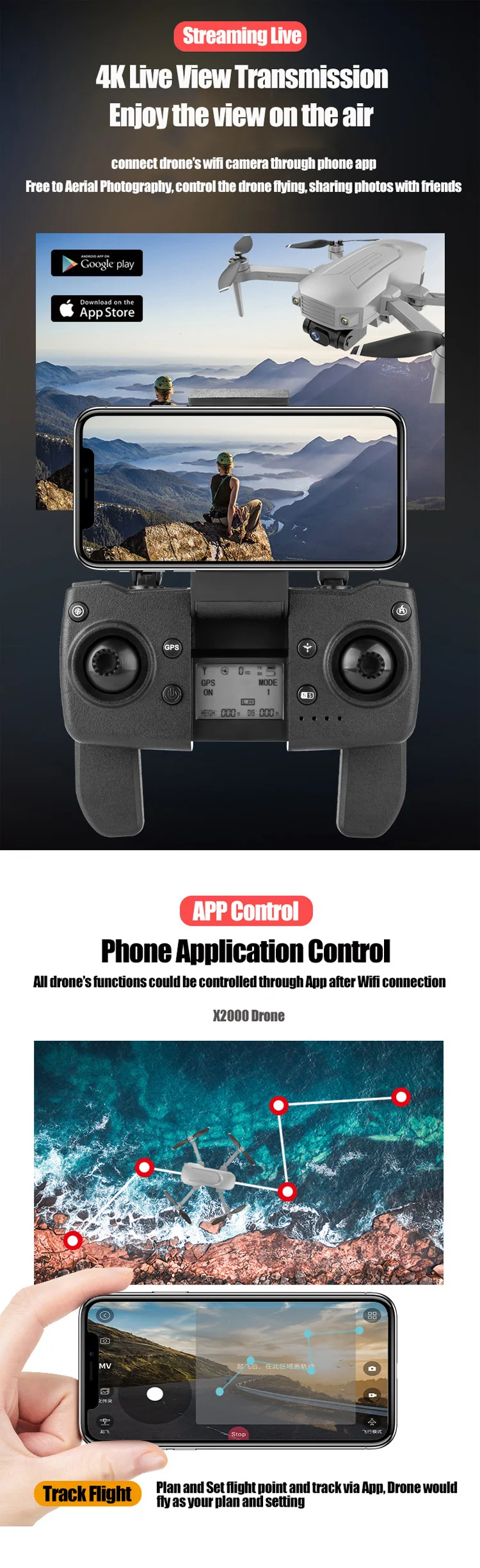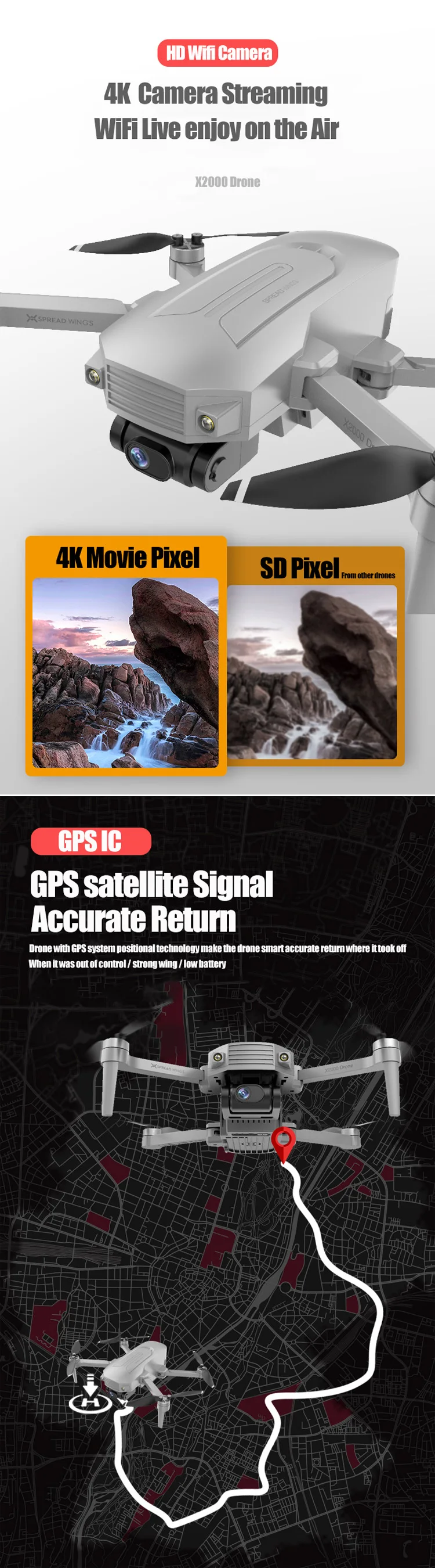 Function: GPS Auto Return; Follow Me; Circumvolant Flight; Gesture Photography; Point/Position Setting Flight; Durual Camera