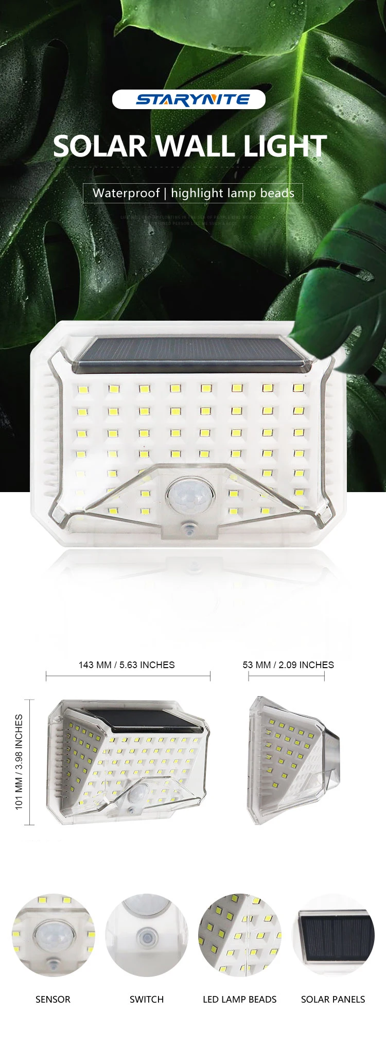 STARYNITE 2021 NEW 90 LEDS SOLAR POWERED WATERPROOF HOME SECURITY WALL LIGHT WITH MOTION SENSOR PIR OUTDOOR LAMP