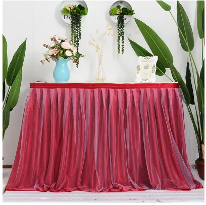 Tableware Tablecloth Wedding Banquet Table Tulle Table Skirt Elastic Mesh Table Top Accessories Decoration Tutu Skirt Tablecloth US $7.57-$8.50