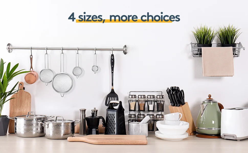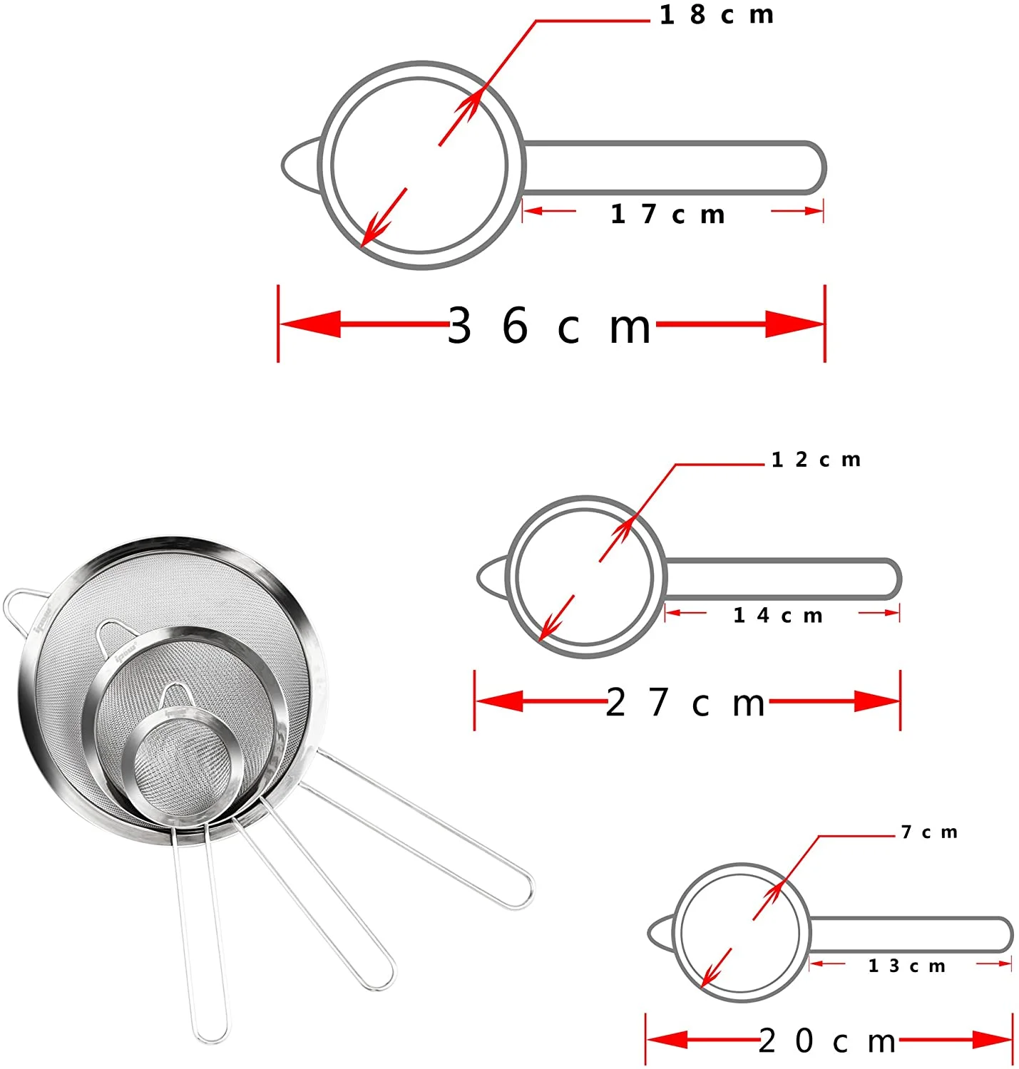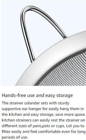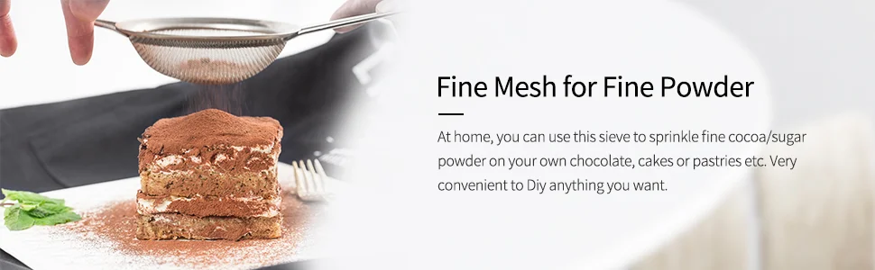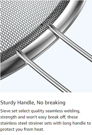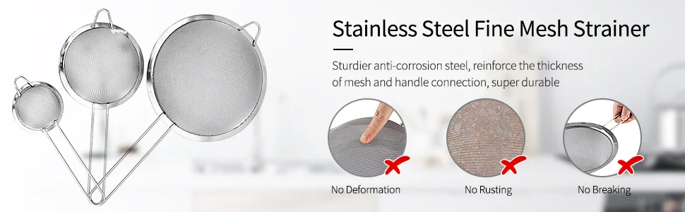The mesh is fine enough to strain tea, quinoa, coffee, beans, Pasta, rice and so on. This strainer set is also perfect for sifting