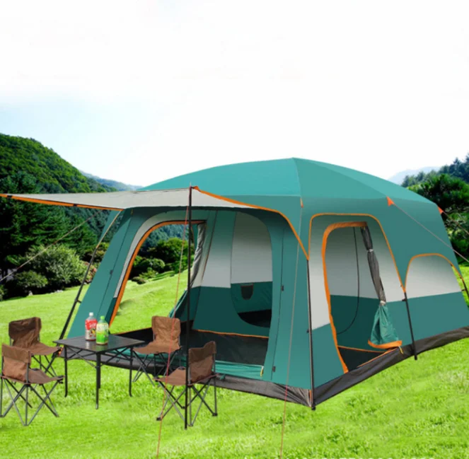 Палатка-Трейлер туристическая портативная водонепроницаемая семейная палатка для отдыха на открытом воздухе кемпинга 8-12 человек две спальни и одна