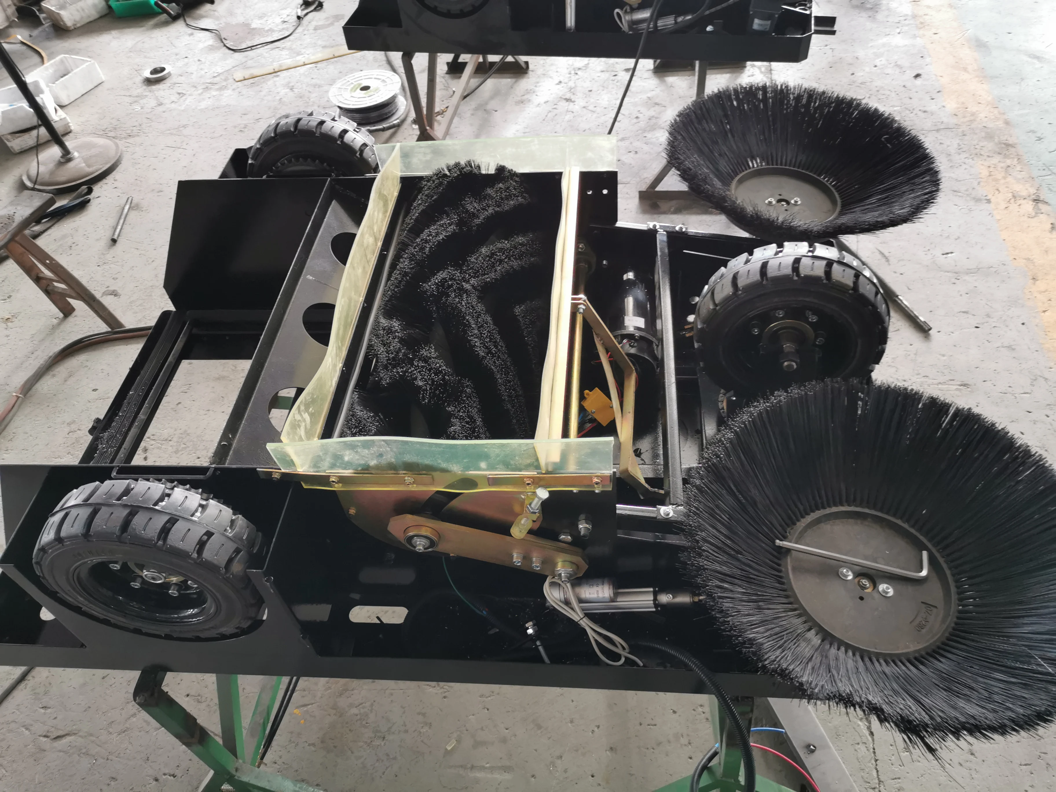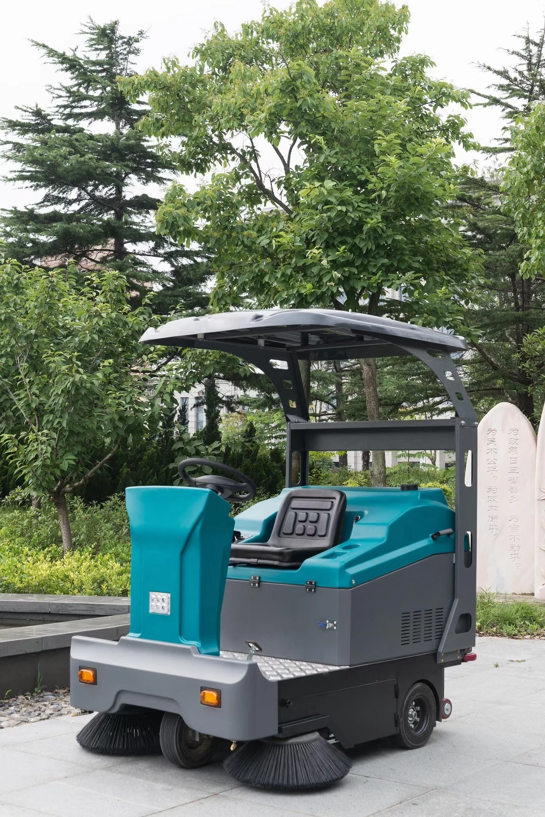The 3rd generation of pure electric vacuum sweeper is finished equipped with pressure filter system, brushes system, smart cleaning adjusting system, etc..