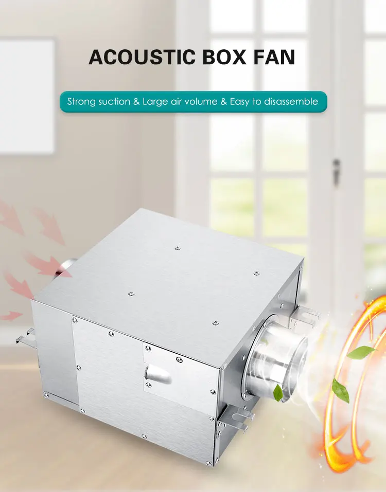 Reversible inline duct exhaust fan ventilation system high air flow duct acoustic box fan
