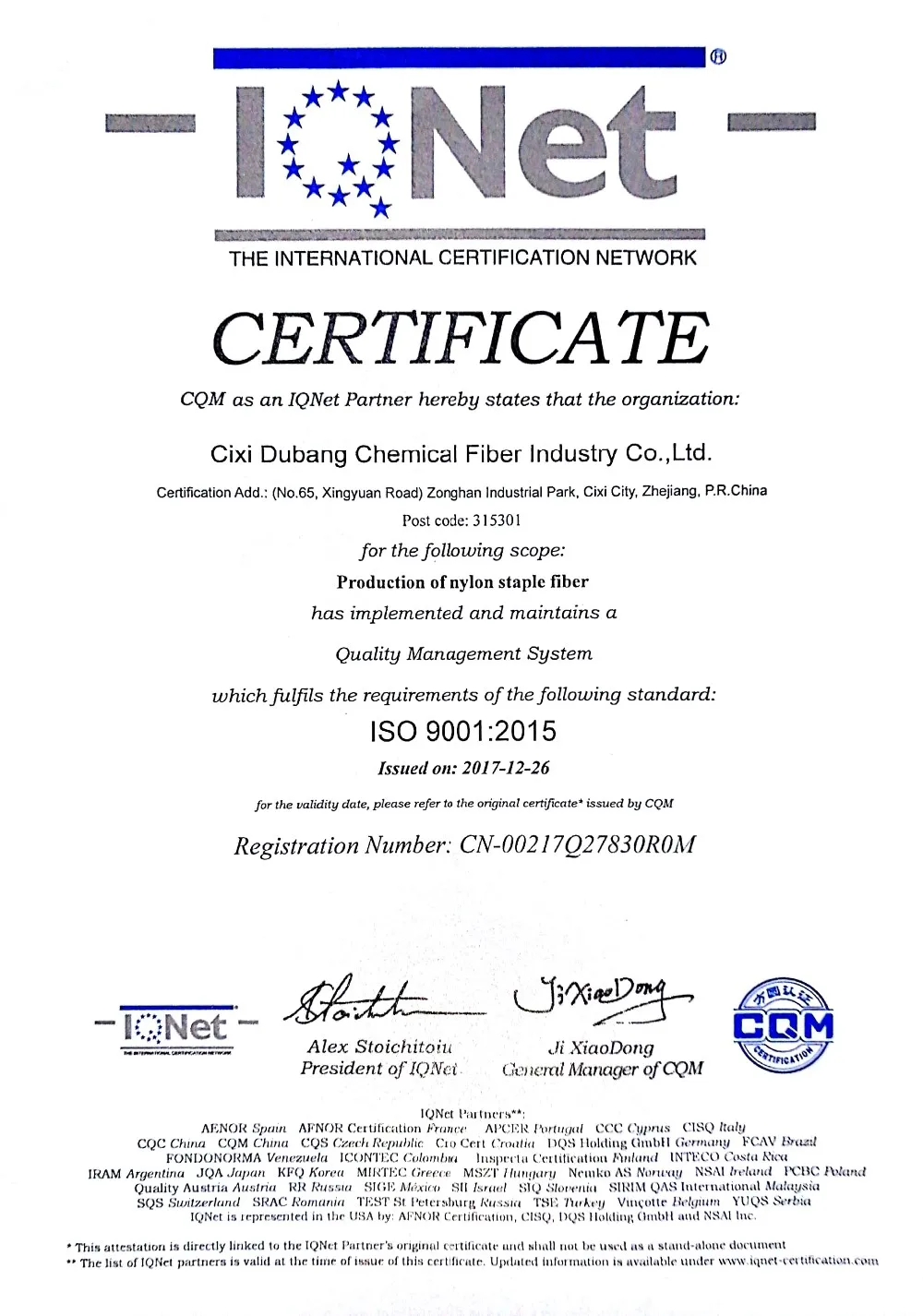 Dubang основана в 1996 году и получила сертификацию ISO9001 с 2005 года. Наша фабрика расположена в Нинбо, провинция Чжэцзян, недалеко от порта Нинбо и порта Шанхая. Мы владеем самым передовым полиамидным (нейлоновым) волоконным производственным оборудованием и фокусируемся на разработке новых продуктов. В настоящее время фабрика составляет 10000 квадратных метров, работает 120 работников и производит нейлоновое волокно 12000 тонн/год.