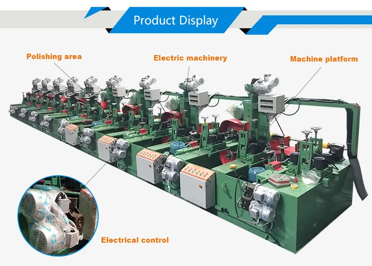 A:(1)stainless steel pipe making machine , stainless steel round and square pipe polishing machine ,Pipe roller set , Polishing Material ,Full Automatic Hydraulic Pipe Cutting Machine, Slitting machine etc