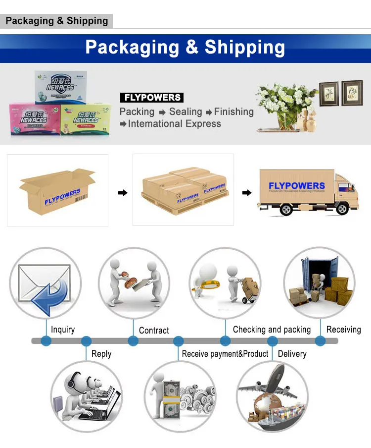 Using Method | 1,Used for machine washing:first,put clothes into machine.then,add the laundry sheets in moderation.Finally, start washing.2,Used for hand washing:first,pour into water.then,add the laundry sheets in moderation.Finally,add clothes and start washing. |