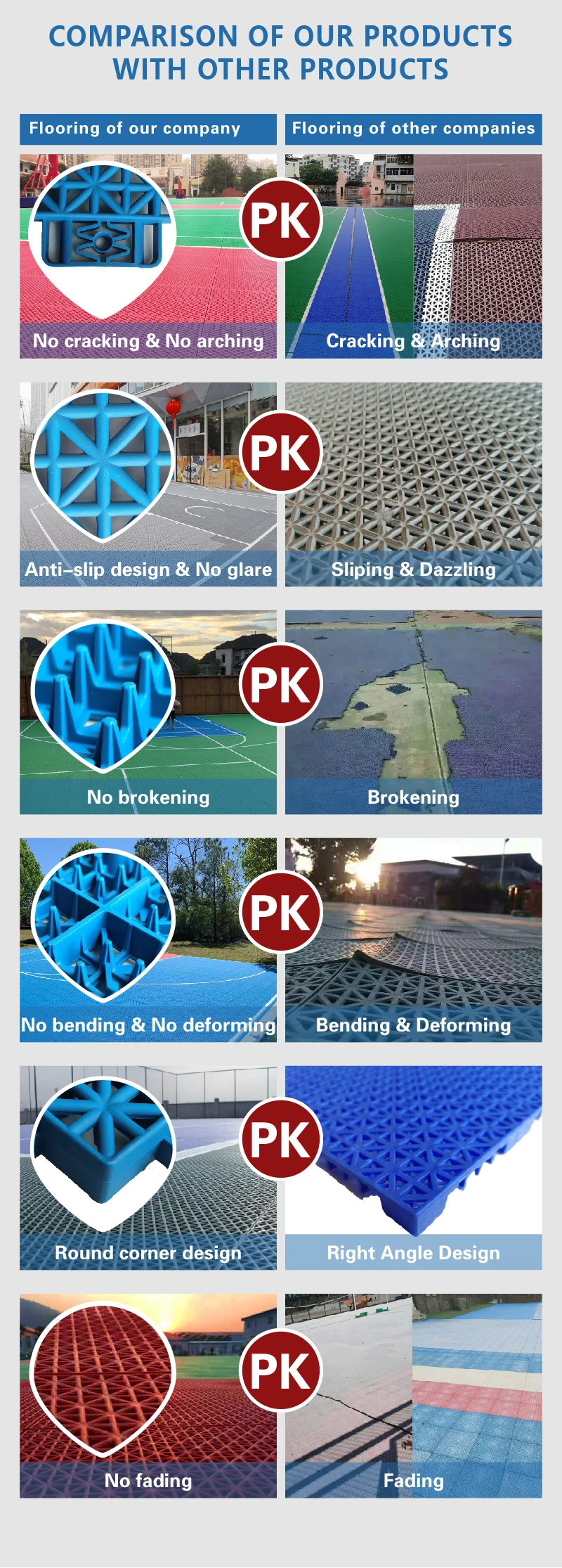 2. Q: What's the difference between you and other sports flooring manufacturers?