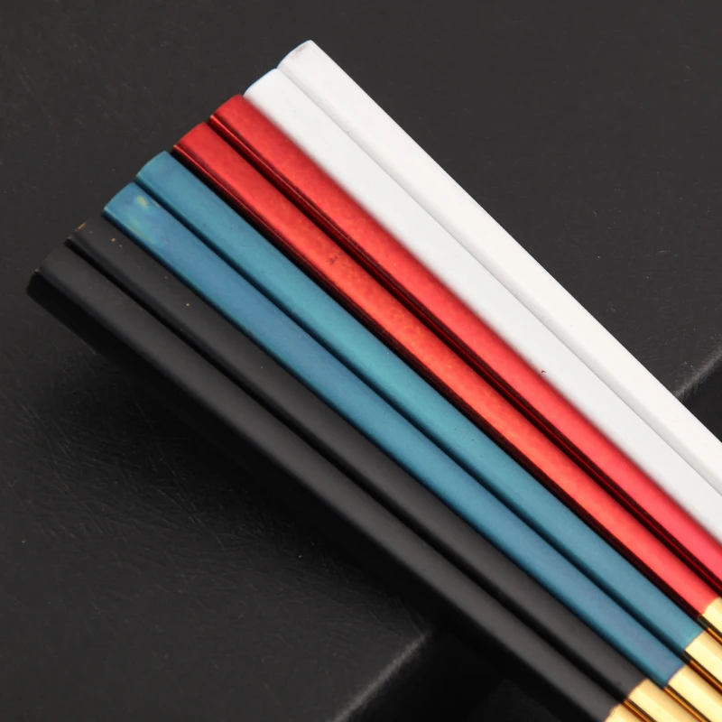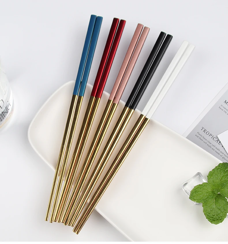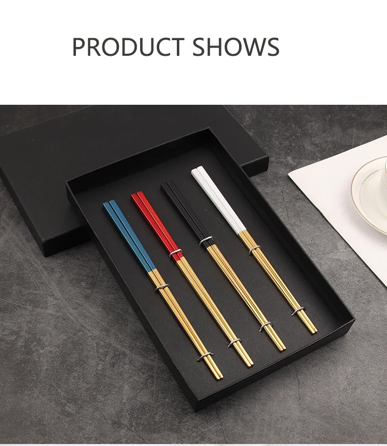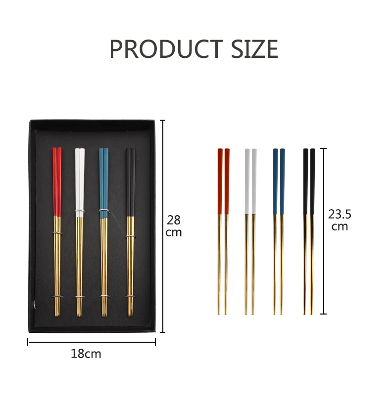 Stainless steel 304 gold mix color chopsticks set 4 pairs with black paper box
