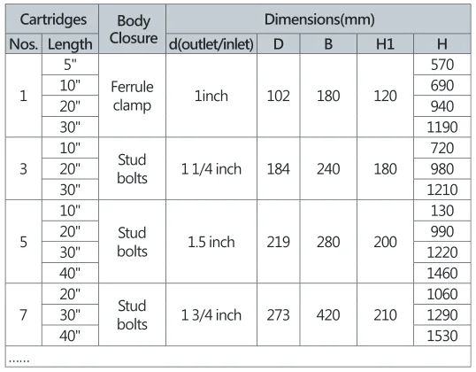 Корпуса вмещают от одного (1) до многих картриджей 10 ", 20", 30 "или 40"