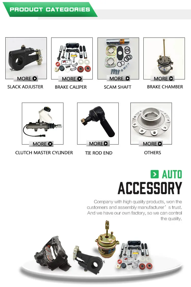 Specialize in the slack adjuster, brake caliper repair kits and brake chamber.