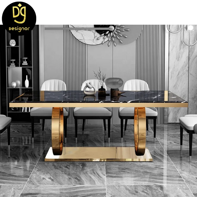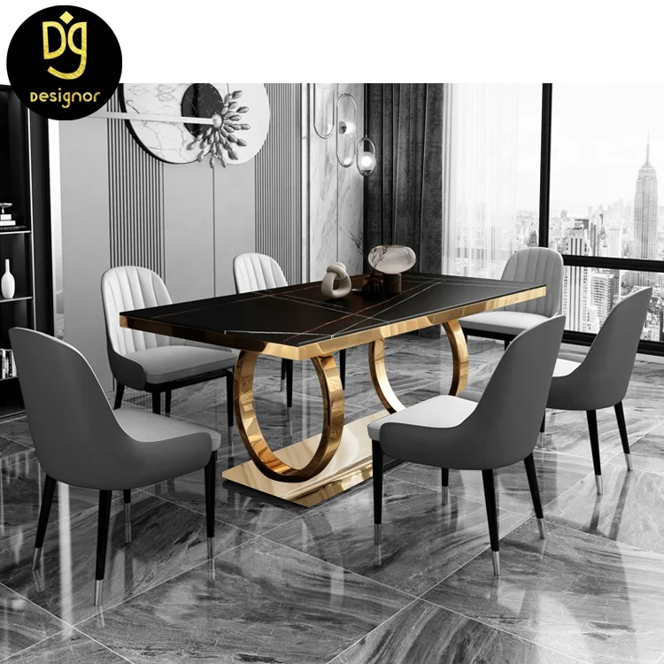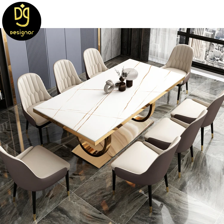 DG1130A Золотая основание из нержавеющей стали Современный итальянский дизайн Роскошный Белый Мраморный Топ 6 стульев столовая мебель