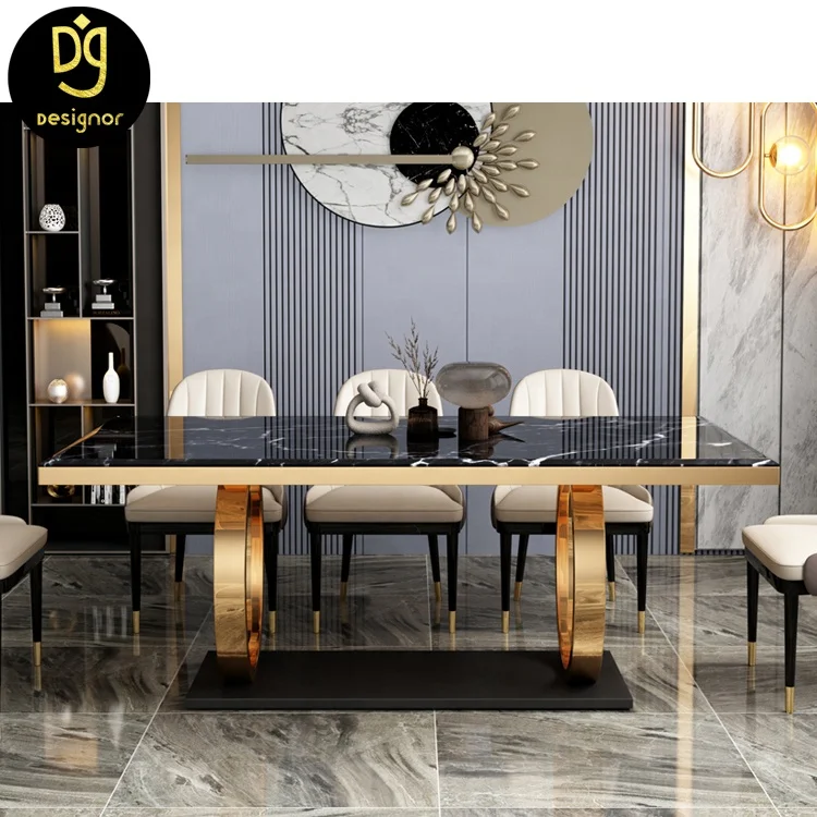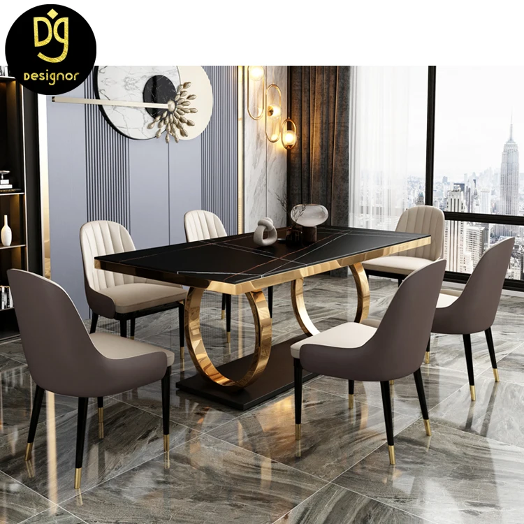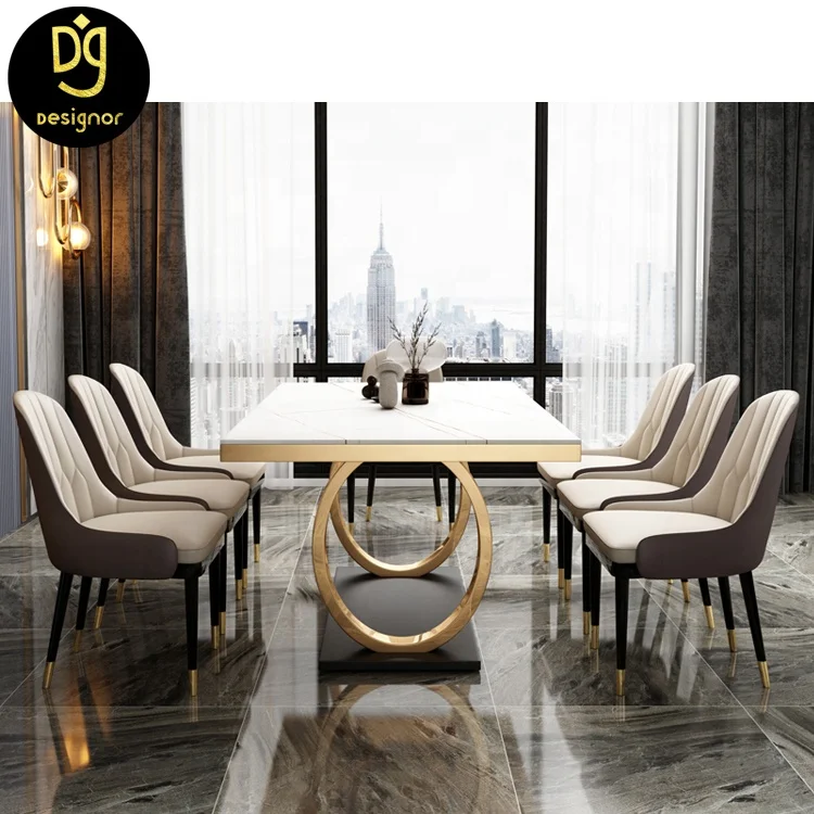Gold stainless steel base modern Italian designs luxury white marble top 6 chairs dining room furniture sets dining tables