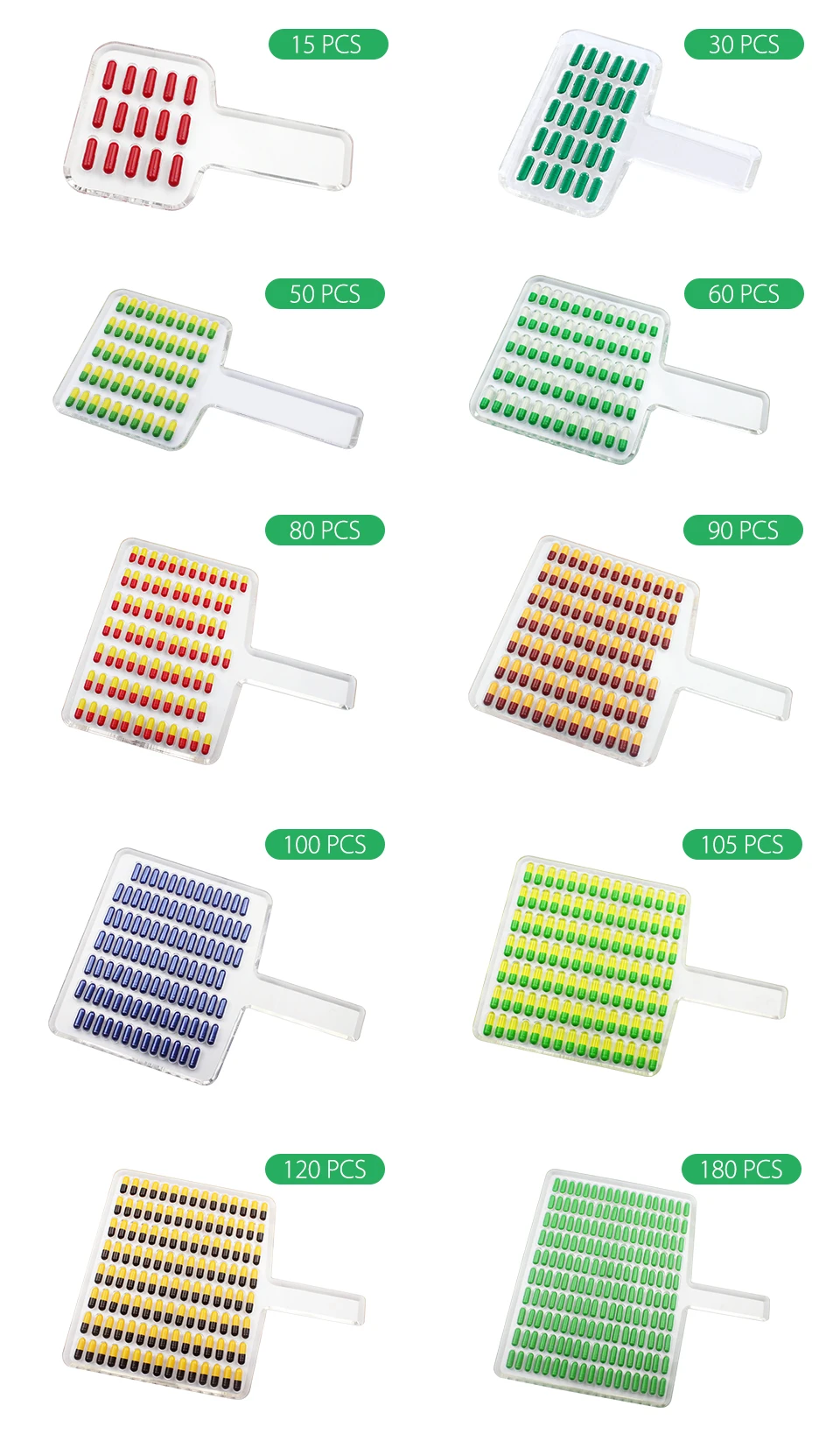 5.Fast & accurate counting: With the fixed holes on manual counters, it is easy to count number of capsules for any size of capsule / tablet
