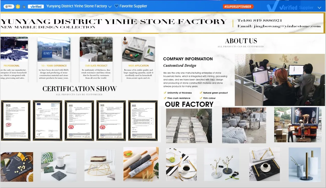 Our slate product is advantageous for its uniformity of thickness, fine crush resistance and firm colour, that be favored by customers from all over the world. Slate is the best material for flooring, wall cladding, decorations, roof deck, and coasters, place mat. Because of its stable quality and large supplying quantity, made it excellently used in household items, gift artware, home decoration, ornaments, construction materials, hotel, bar, western restaurant, garden, scenic spots and etc.Our marble cup mat and sandstone cup mat are processed with meticulous cutting, tumbling, manual drawing, into a cute cup mat, mural artware product, delicate patterns, featured with simplicity and nature, or vintage style, or modern style, colored with black green, beige, rusty and etc. It is a new natural green product. favoured by white-collars, on the table, in the office, and more that, it would manifest one`s personality, to give a expression of talents in modern city. And it also can be used as a media for enterprise propaganda, or product items promotion.Meanwhile.Welcome to visit us, and we sincerely hope we could grow strong together in this field.