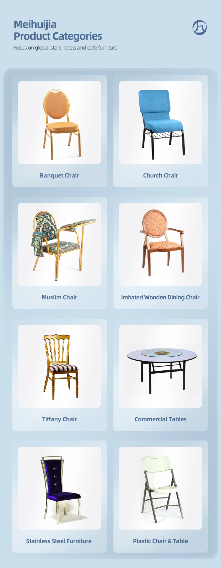 Foshan Meihuijia furniture factory has more than 10 years of experience in developing and manufacturing high quality hotel furniture and dining furniture.