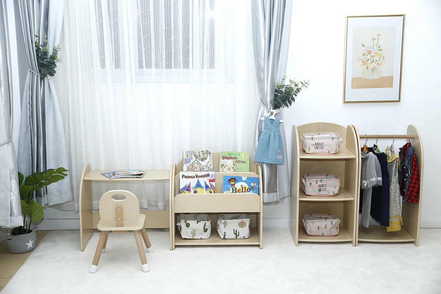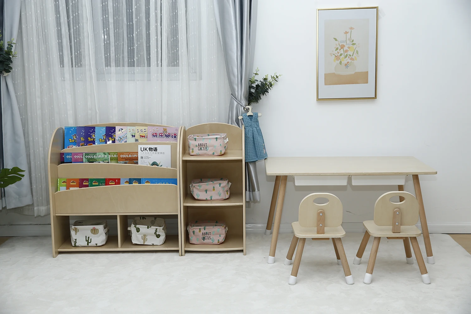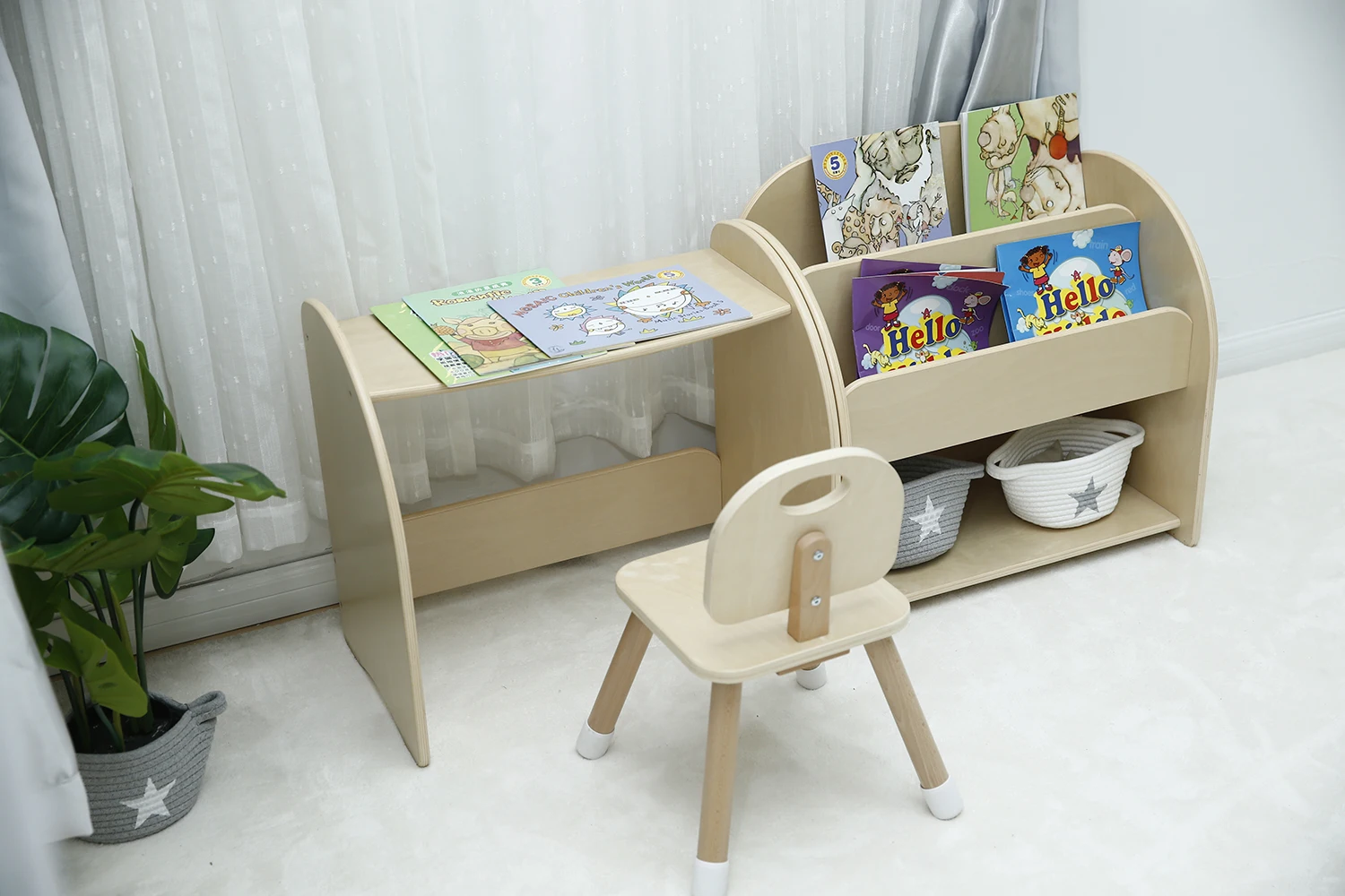 Learning Table+Bookshelf +chairModern Antique Design Metal Wooden Bookcase, Wood Ladder Book Shelf, Wood BookShelf