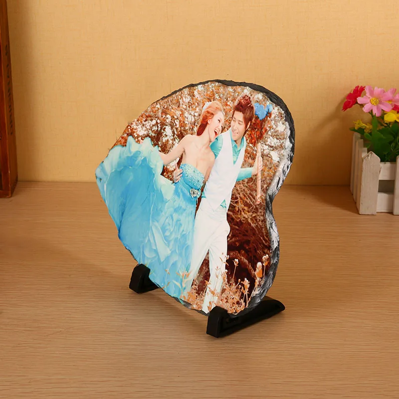 Photo Slate is a dye-sublimation substrate specifically designed to frame and enhance full color photographs in a unique and natural presentation. With an earthly elegance of finely machined slate, each piece is handcrafted and features chiseled beveled edges to allow any image to flow beautifully on its extremely flat imprint surface. This personalized & outstanding photo rock is perfect for decoration at home or office, a best choice as a gift for friends & the beloved person as well.