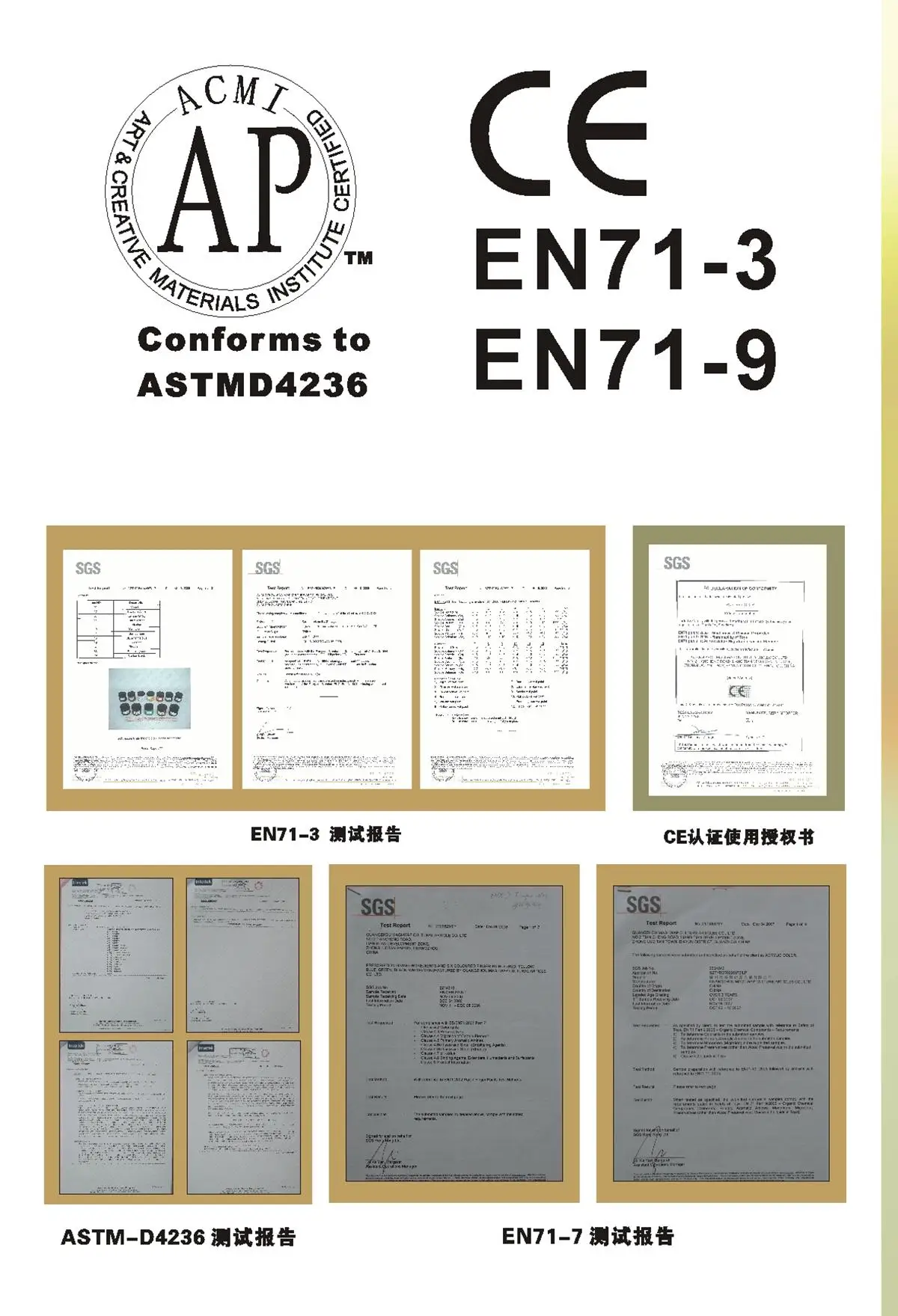 Certificates | AP/EN71-3/MSDS/ASTM |