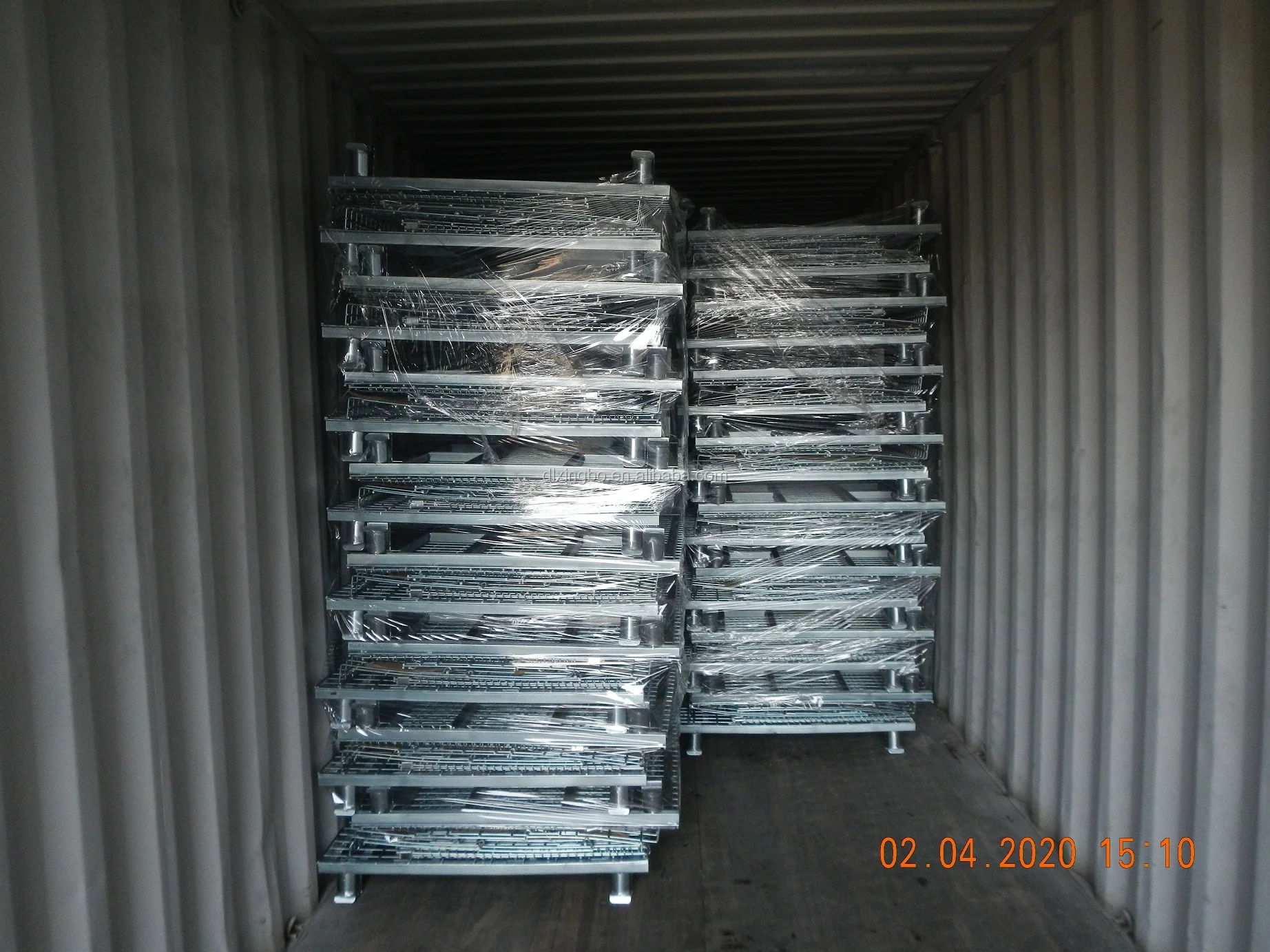 Warehouse large rolling metal wire storage container simple packing----plastic membrane/film
