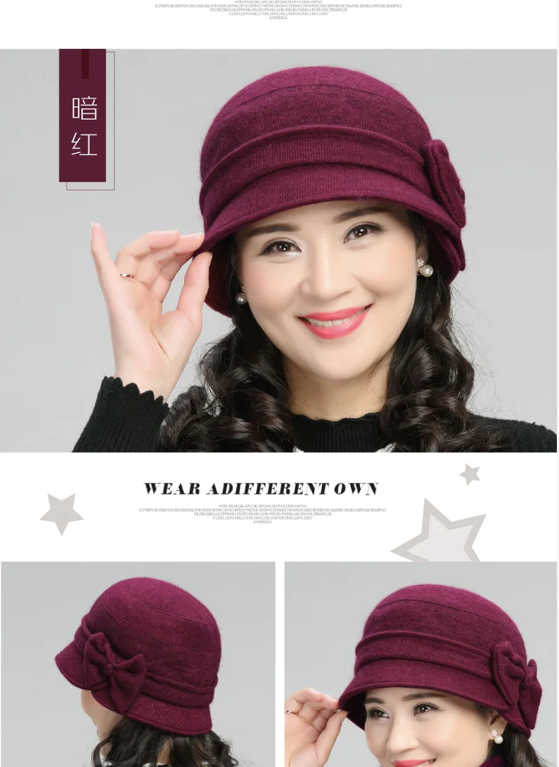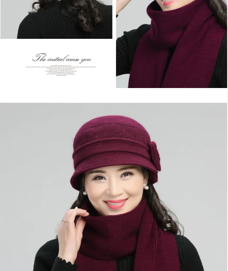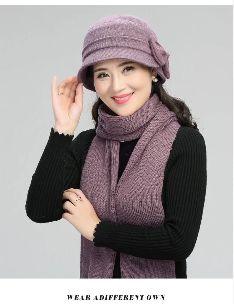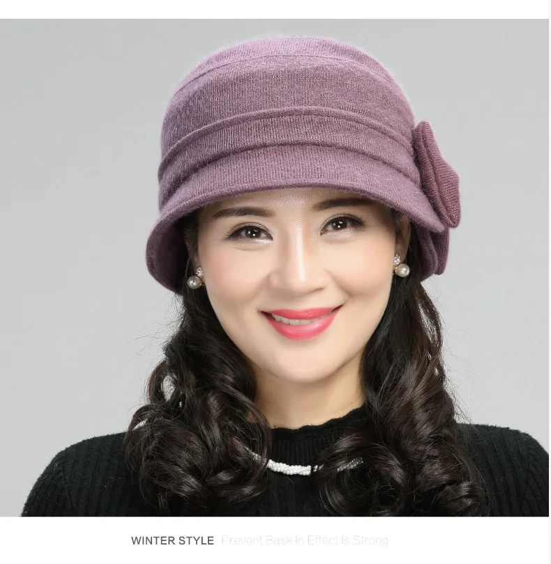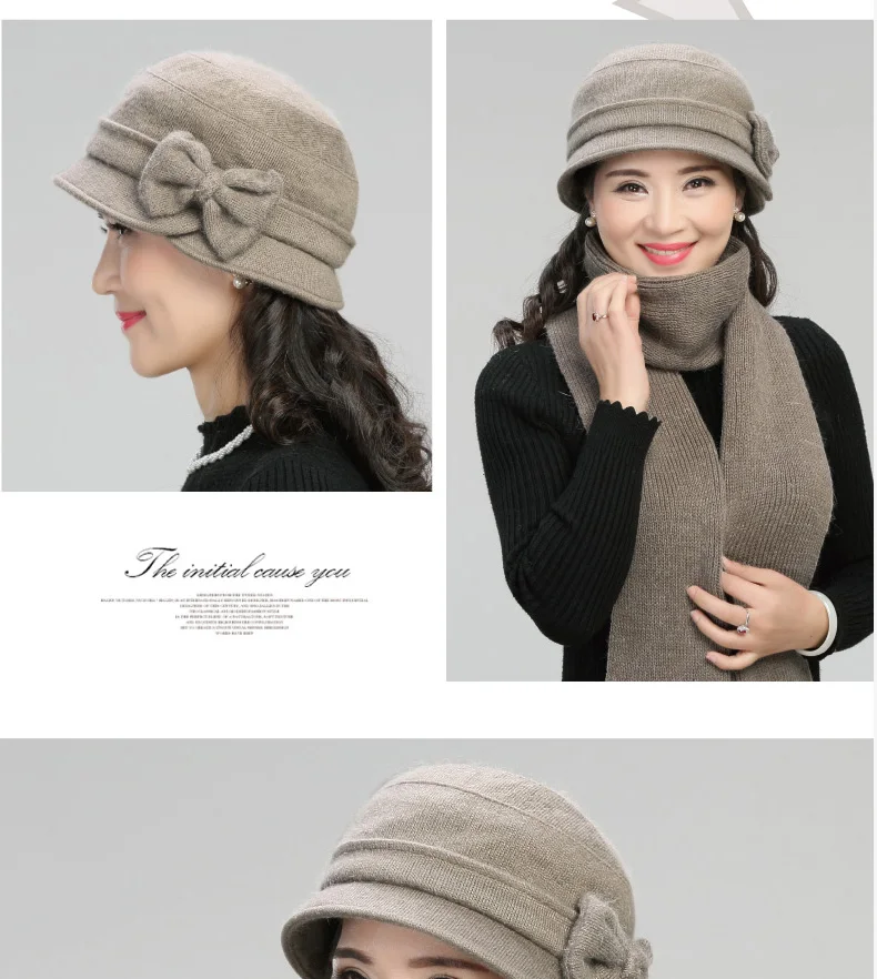 Middle-aged Mother Hat Female Autumn Winter Rabbit Wool Cap Lady Warm Grandma Scarf Women Fashion Elegant Bowknot Hats H7166