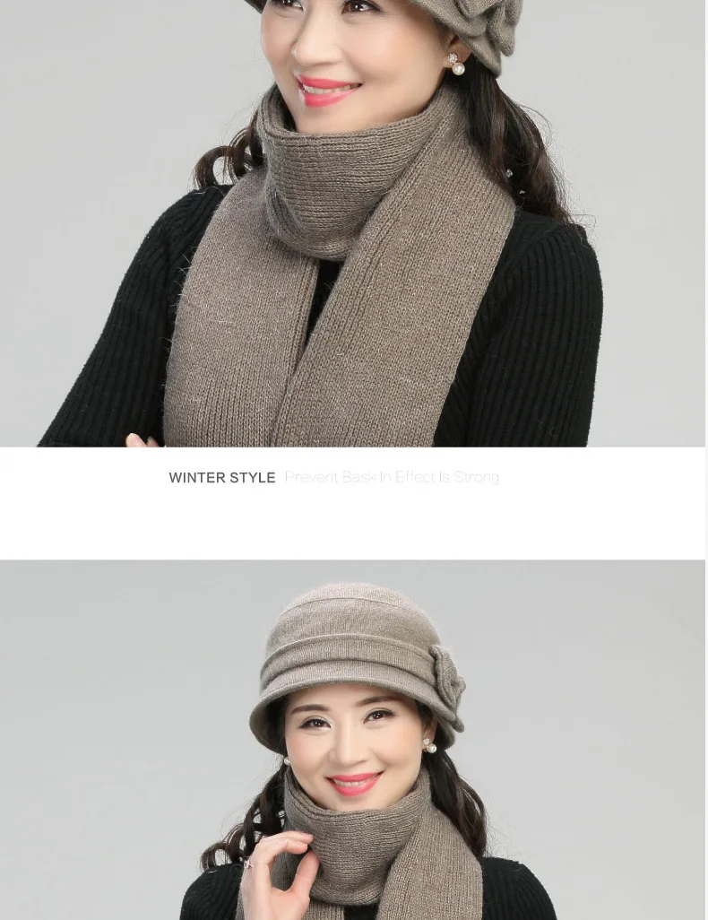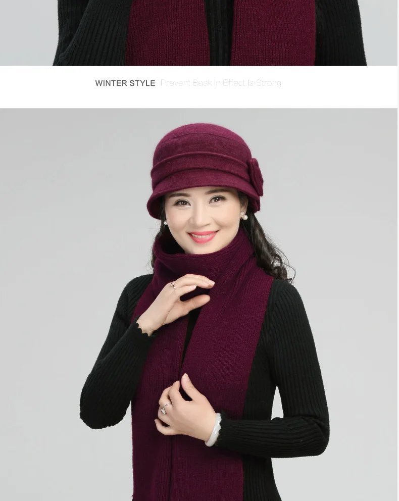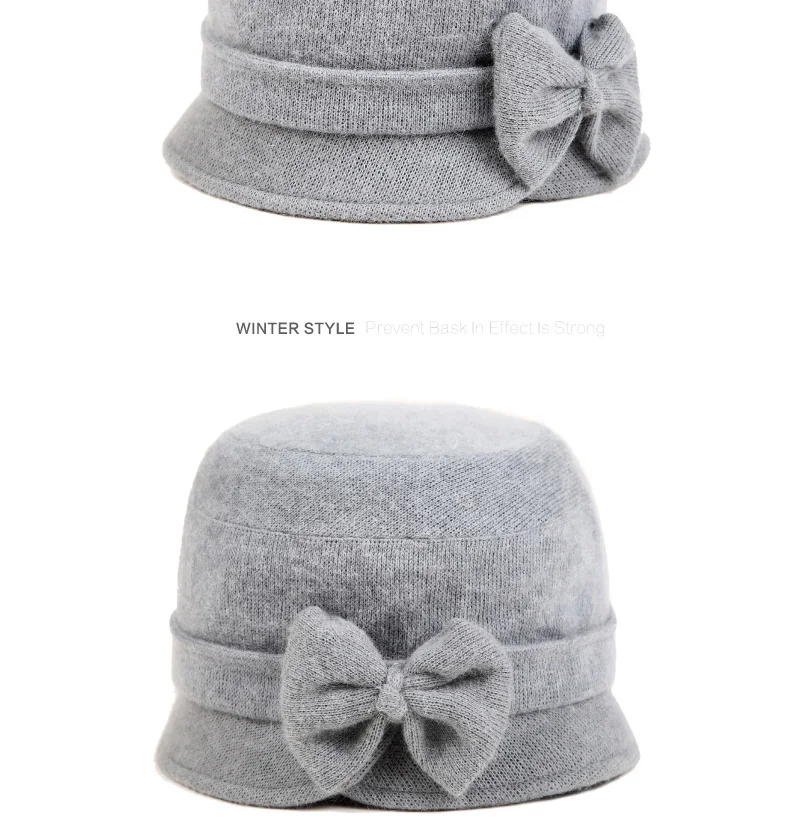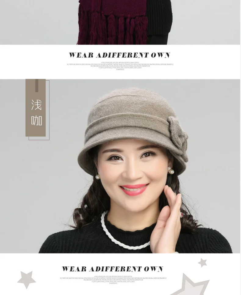 Middle-aged Mother Hat Female Autumn Winter Rabbit Wool Cap Lady Warm Grandma Scarf Women Fashion Elegant Bowknot Hats H7166