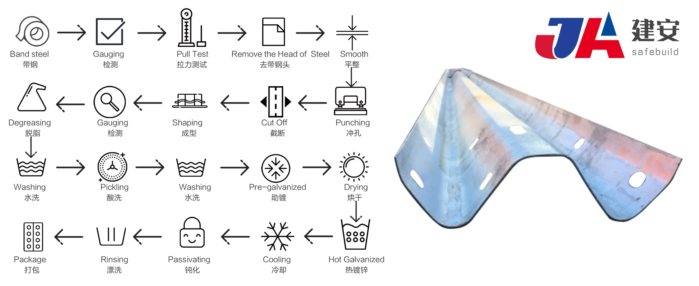 NOTES | ●Thickness of Zinc coating: 550g/㎡ or1100g/㎡; ●The beams may galvantzed before or after fabrication; ●We can customize the length and thickness according to customer requirements. |