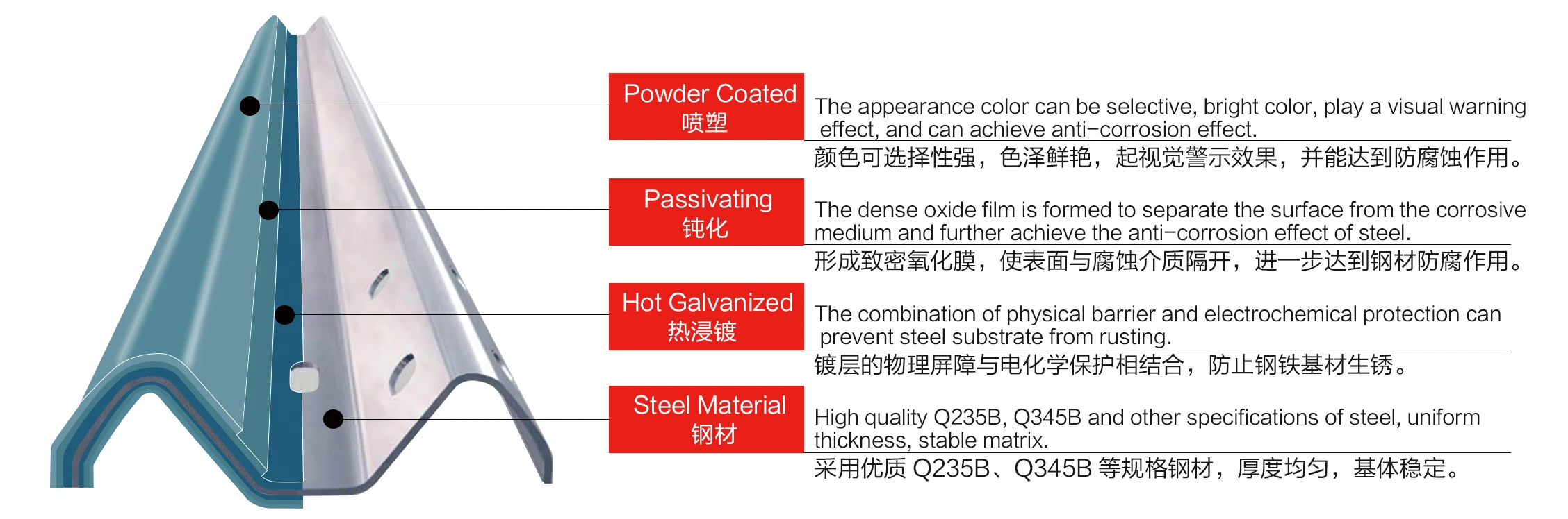 American AASHTO-M180 Technical Standard W-beam highway guardrail | ||||||