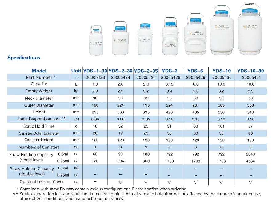 These small capacity containers are designed for transferring biological samples stored via manual work. They are light, portable and economical, with lower static evaporation loss.