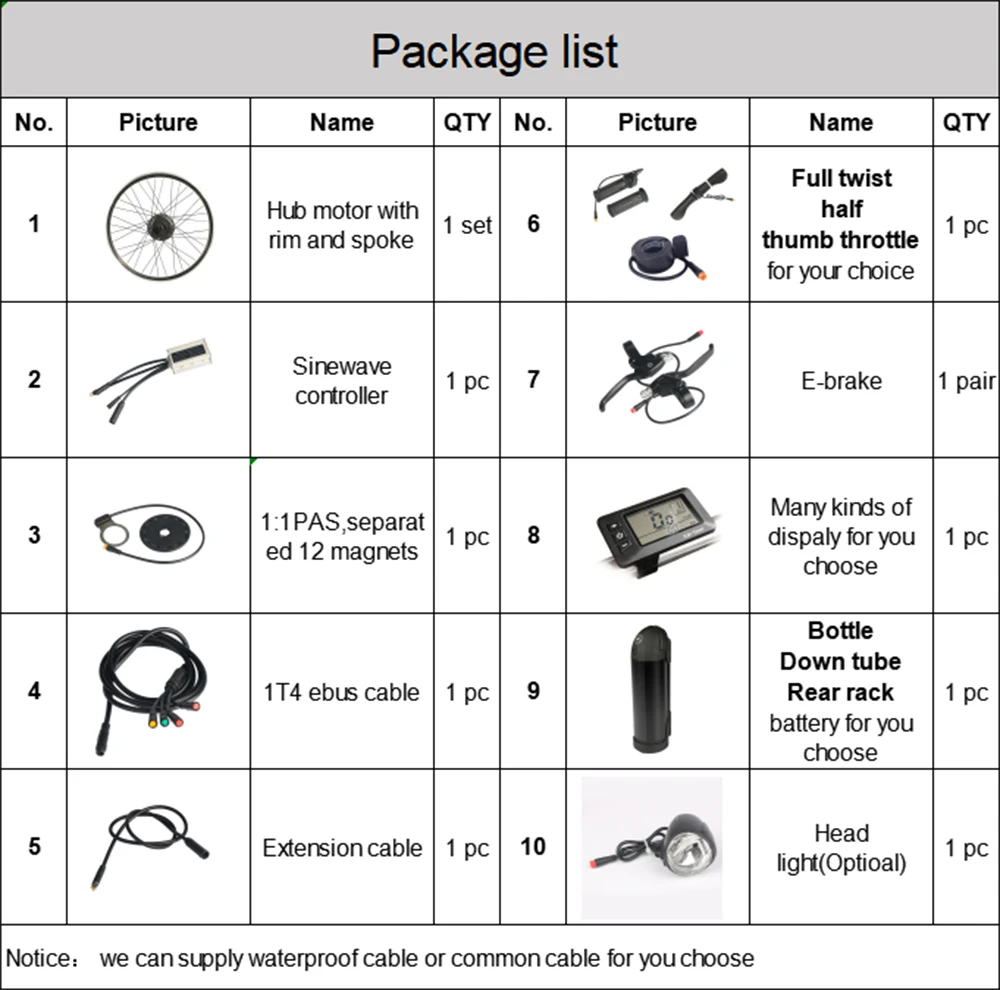 B:You can choose normal or waterproof cables,waterproof cables need to pay addtional charges.