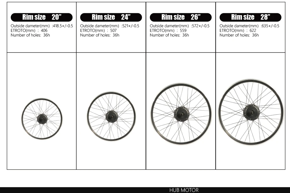 B:please tell us voltage/power/speed/wheel size/colour for hub motor,spoke,rim/front or rear;