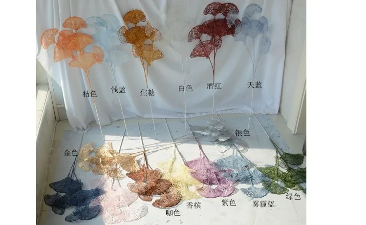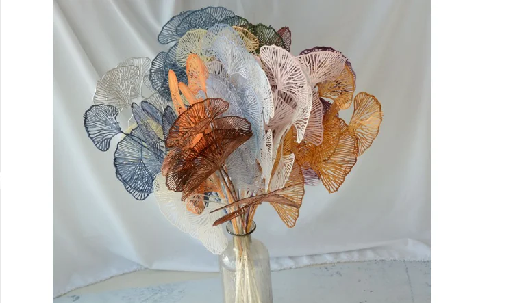 Artificial Round Fan Foliage Plastic Ginkgo Bilola Leaf Tree Branch Carved For Hotel Wedding New Year Flower