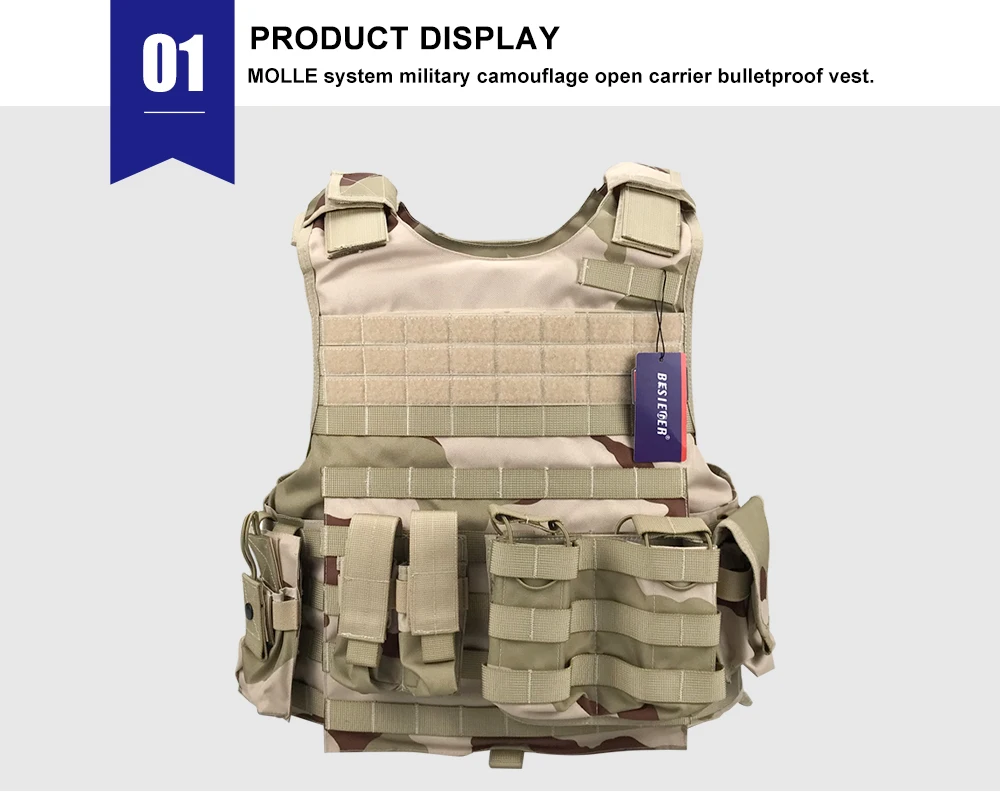 Product name: | MOLLE system military camouflage open carrier bulletproof vest | ||||||